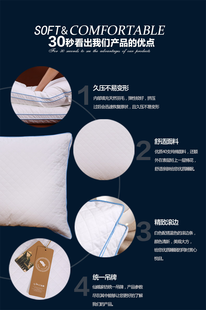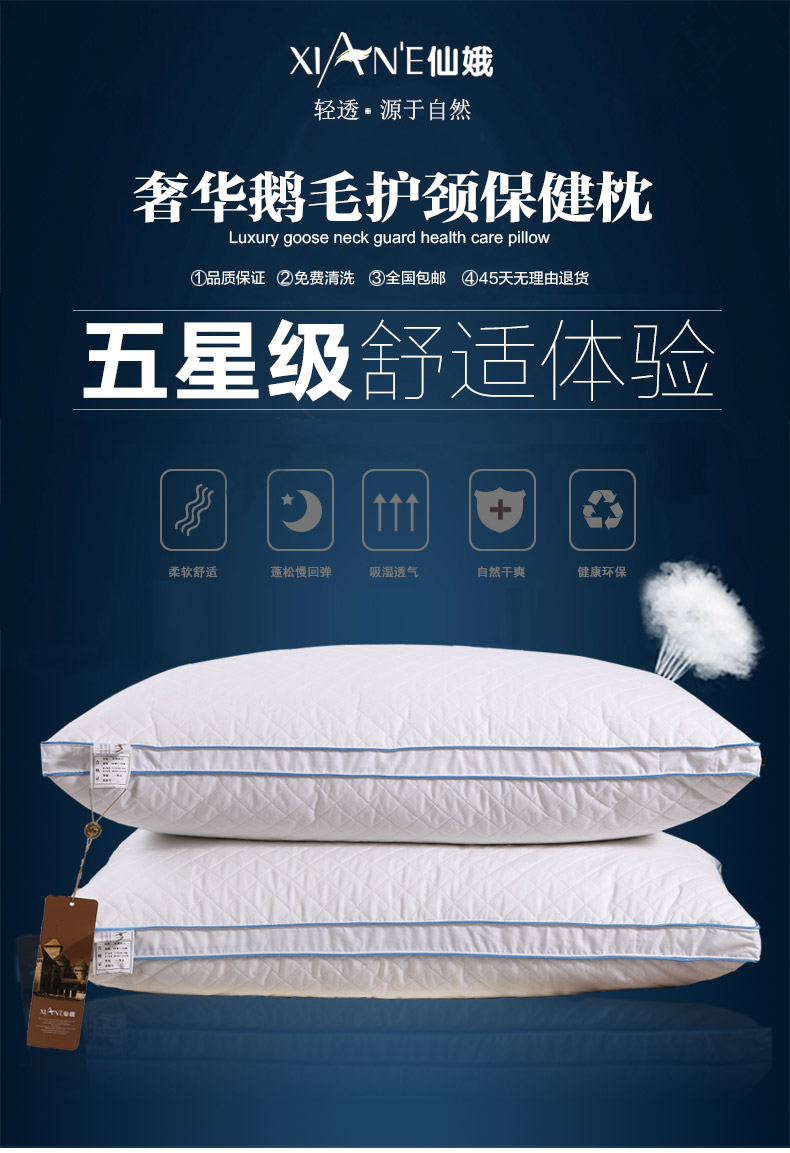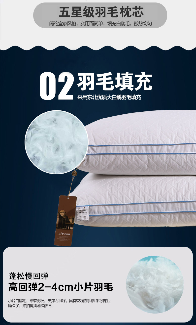 成人颈椎保健枕护颈助睡眠枕头 一对装 舒适有弹性 天然羽毛枕芯