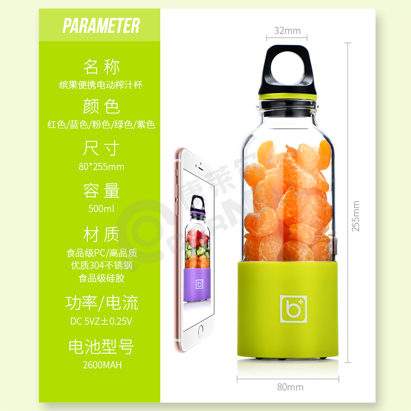 产品型号:KLE-SLB054J17 产品容量:500ml 产品材质:食品级塑料 产品包装:OPP袋+彩盒 产品颜色:随机色发货