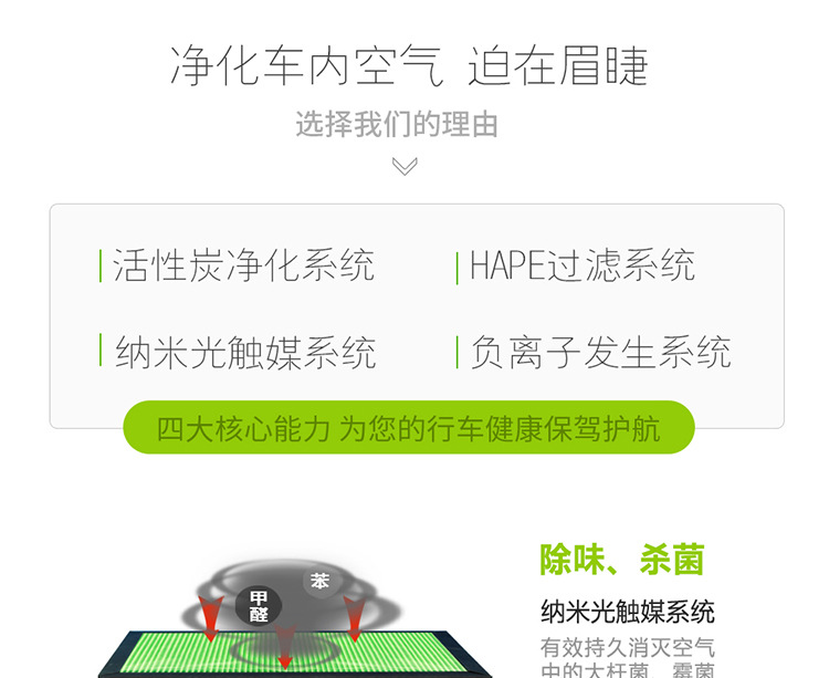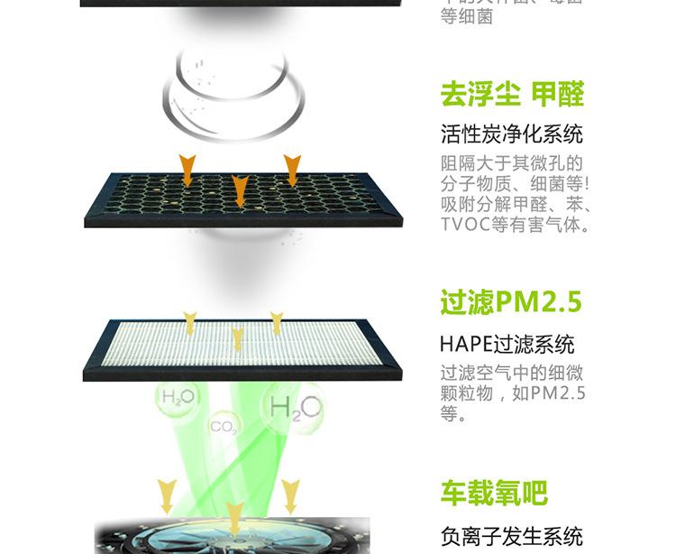 空气净化过程:负离子、香薰、活性炭、负离子、光触媒、ULPA过滤网