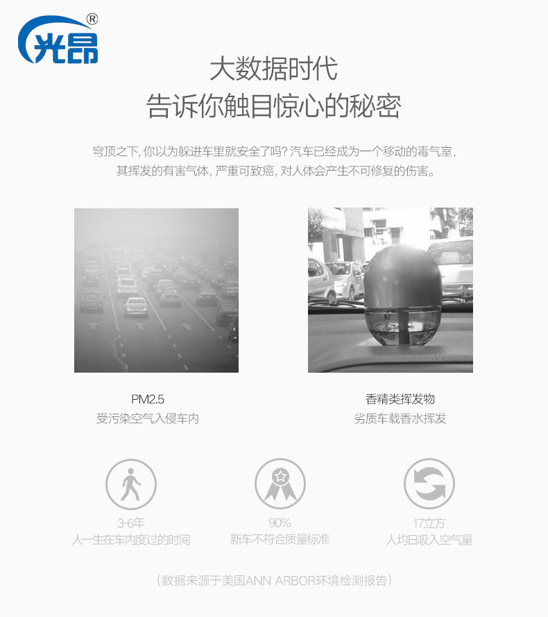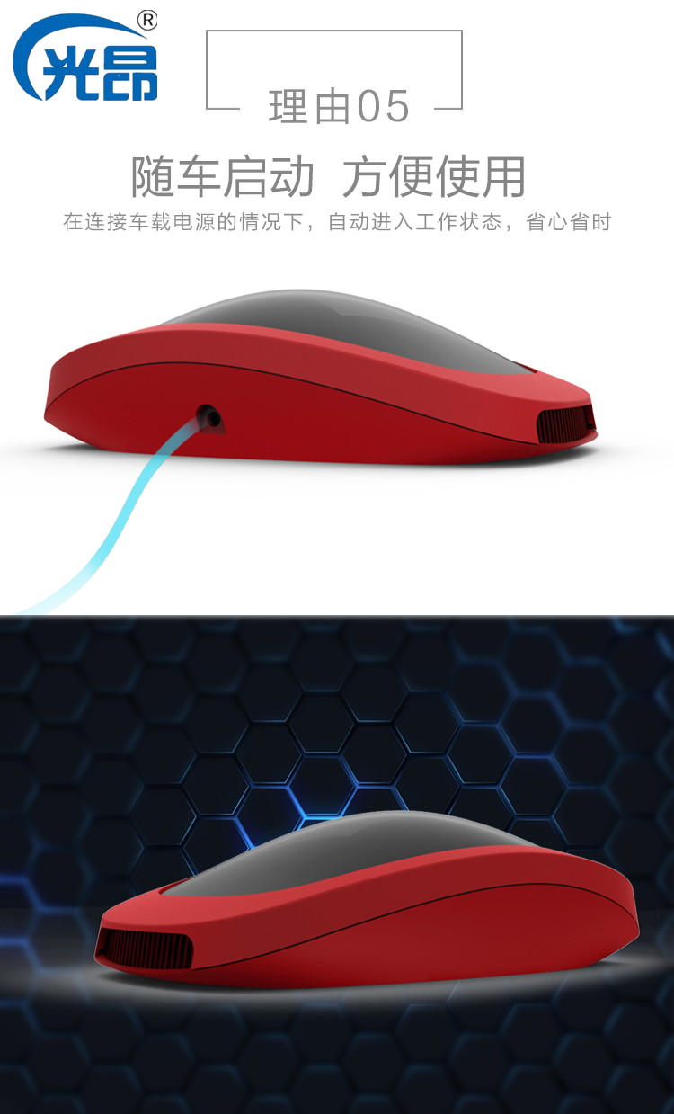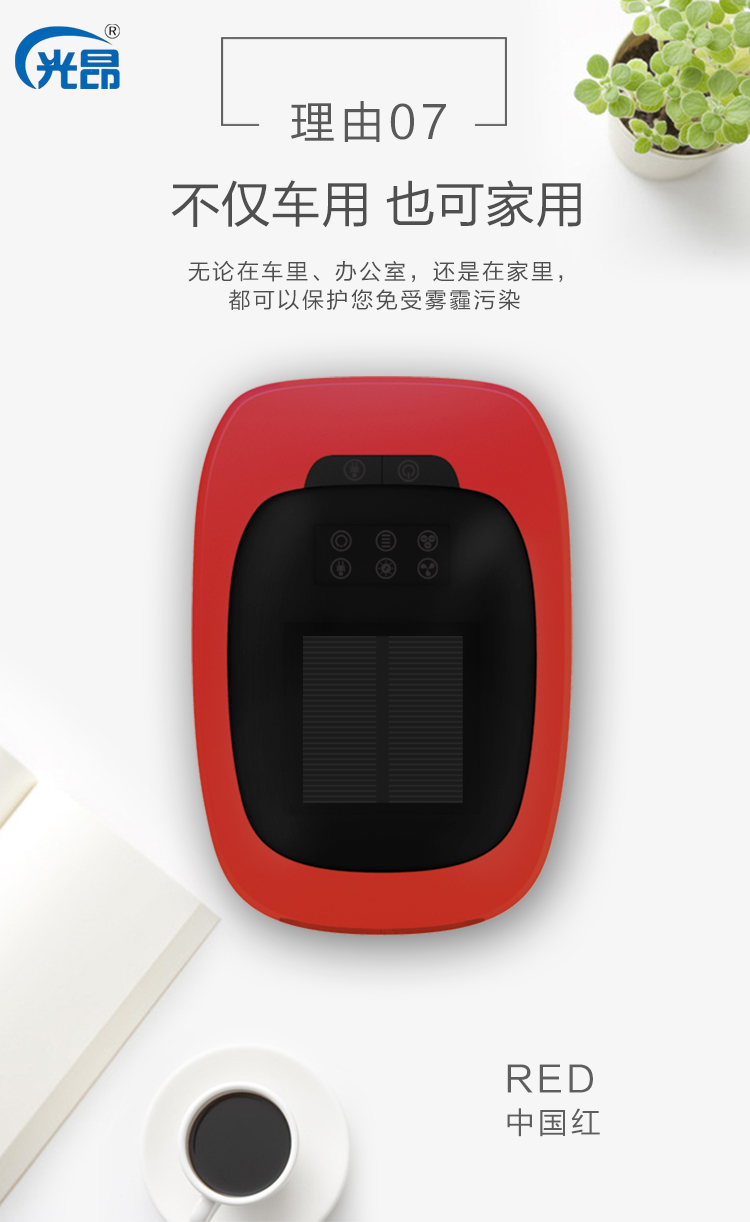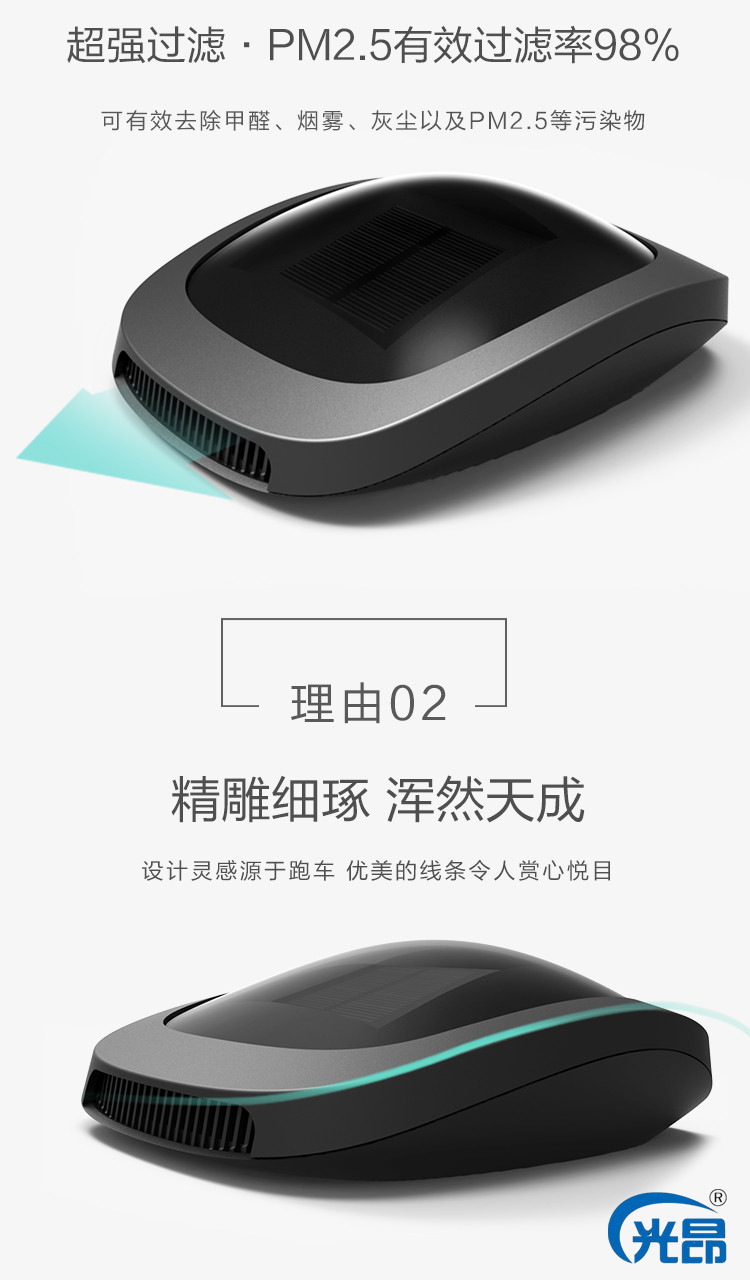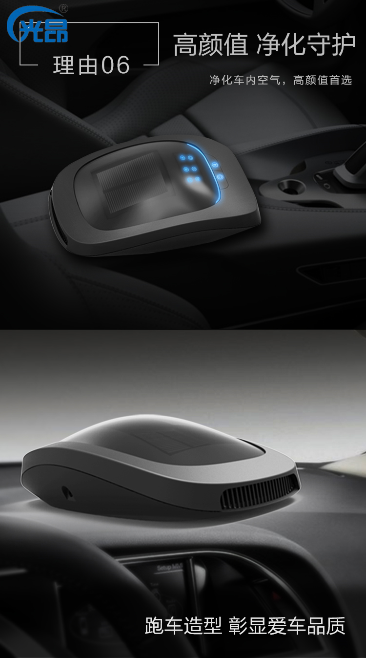 产品特点:智能随车启动感应开关,空气净化,LED显示,多层滤网