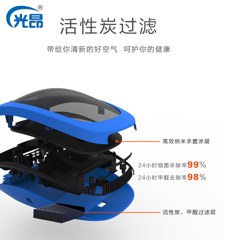空气净化过程:负离子、香薰、活性炭、负离子、光触媒、ULPA过滤网