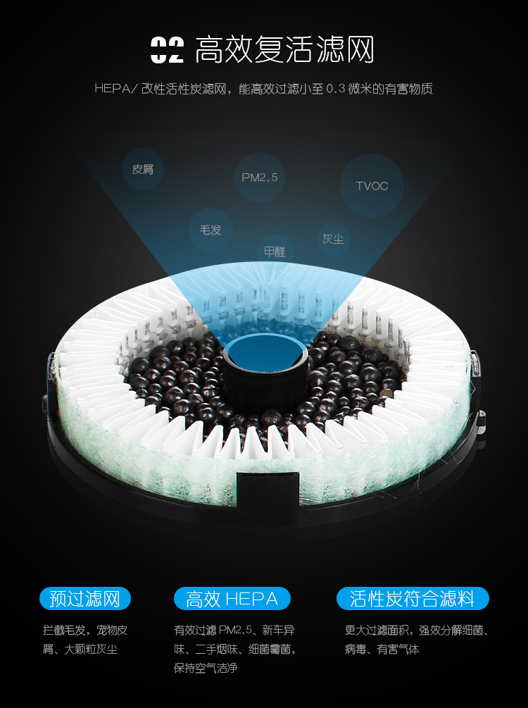 空气净化过程:香薰,超大滤网,轴流风扇