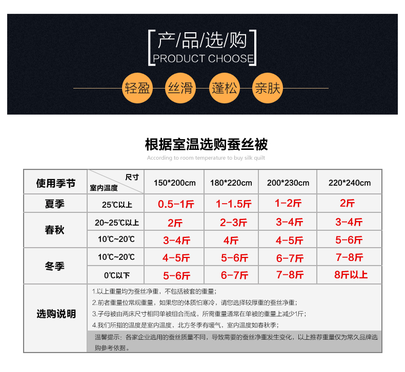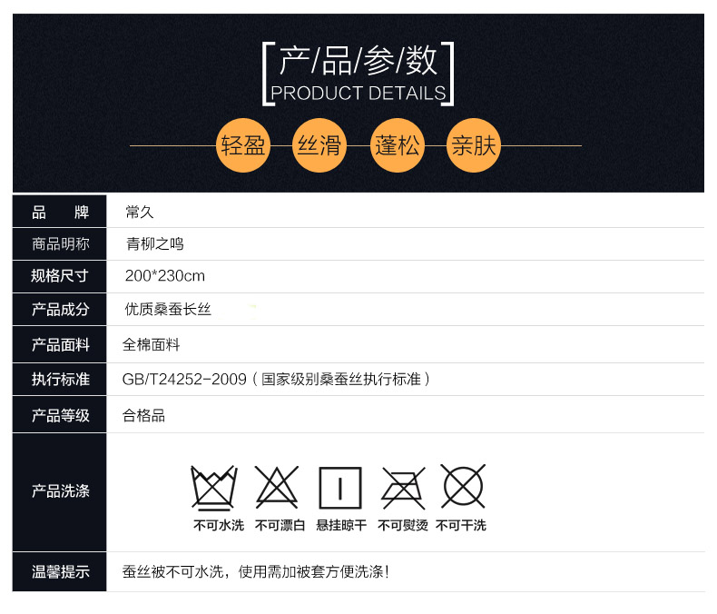 产品等级: 优等品 品牌: CJ/常久 尺寸: 200X230cm 220x240cm 蚕丝含量: 100% 蚕丝种类: 桑蚕丝 蚕丝长度: 长丝绵 被套面料: 棉 适用季节: 空调被/夏凉被 颜色分类: 青柳之鸣-粉(蚕丝净重2斤)