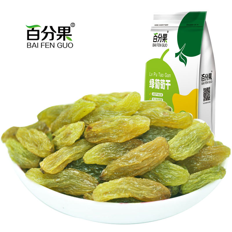 休闲食品 百分果 新疆绿葡萄干200g 果干食品