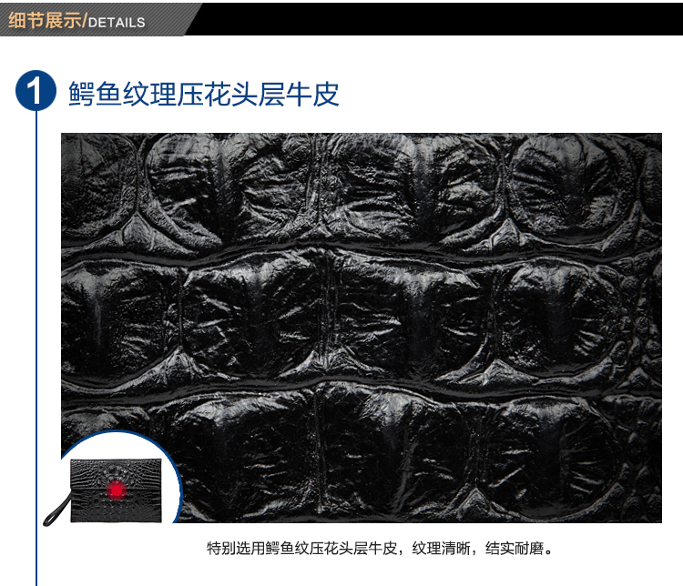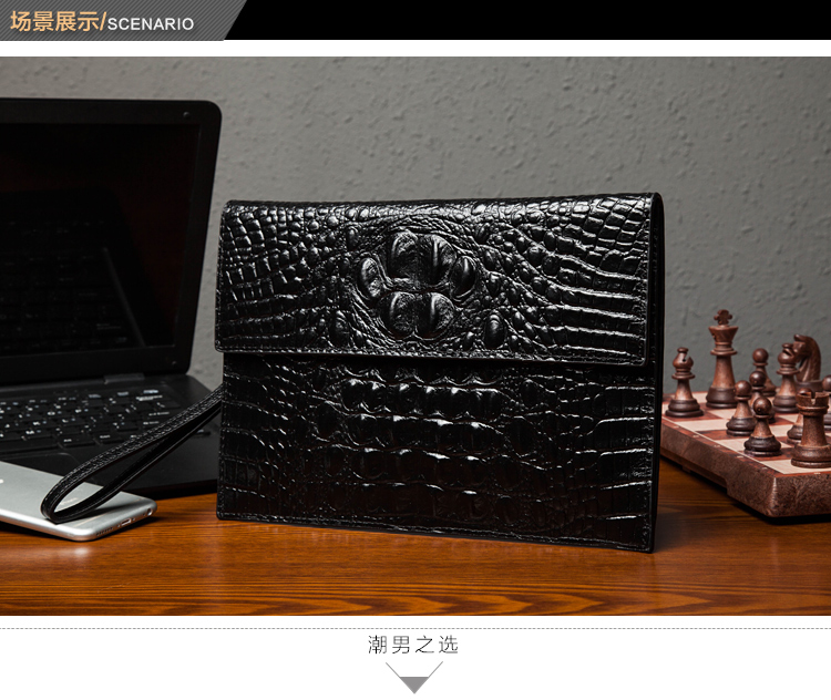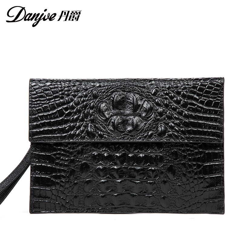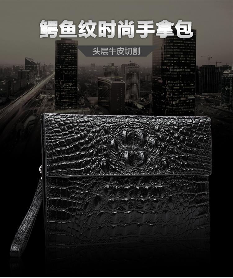 丹爵(DANJUE)鳄鱼纹牛皮大尺寸手抓包 夹包男士手拿包 商务休闲手包D8208-1
