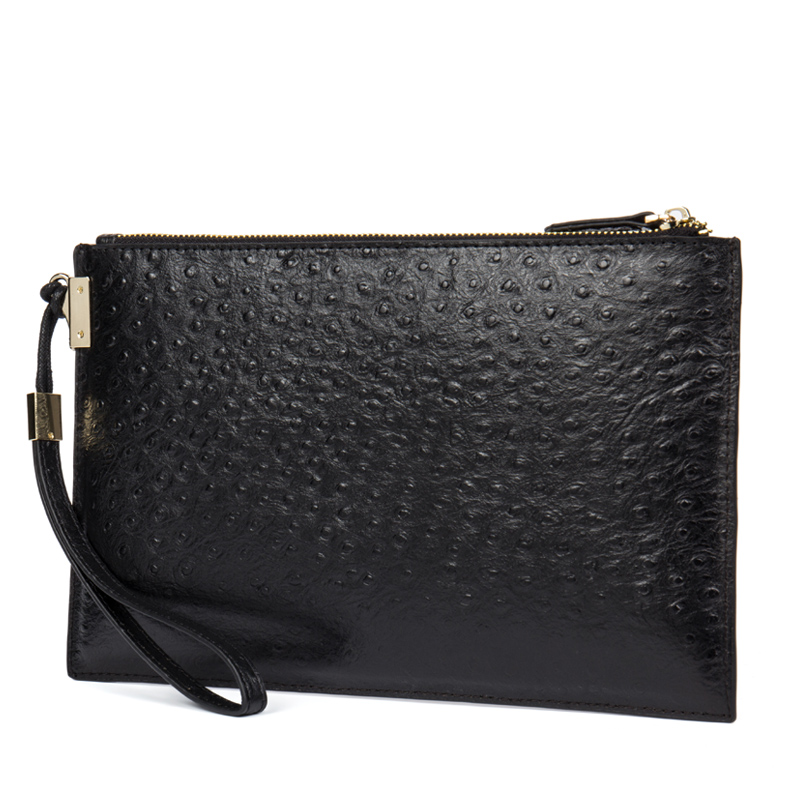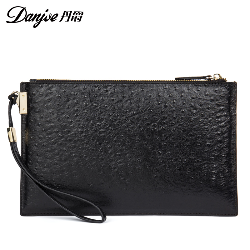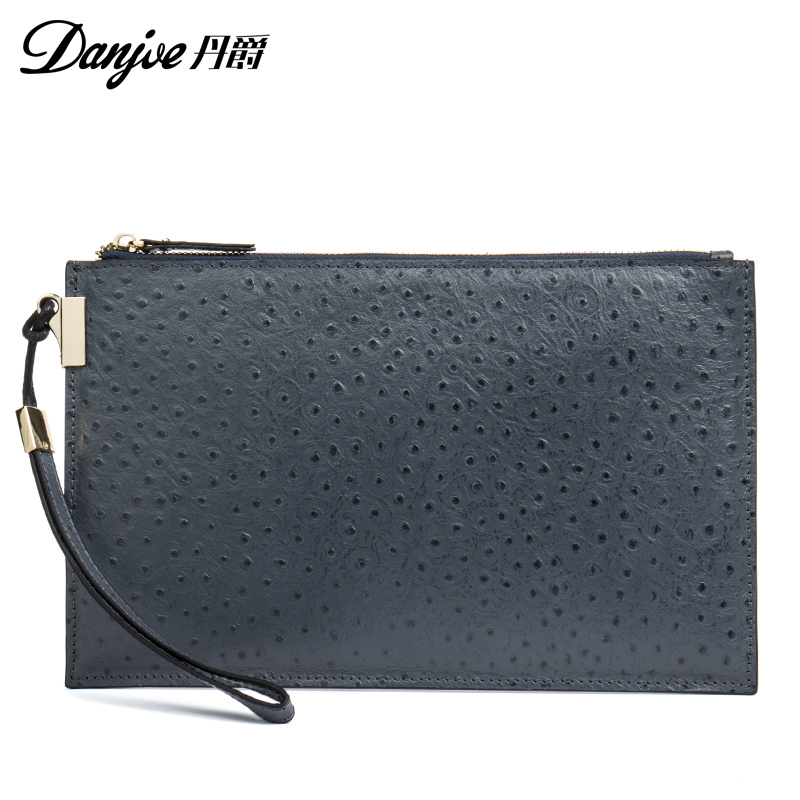 丹爵(DANJUE)新款头层牛皮男包男士手拿包时尚鸵鸟纹压花手包商务休闲男手包 D8086