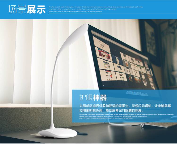 型 号:XE-188 材 质: ABS+PS+硅胶 功 率:5W 节能环保,高效LED发光技术,光照集中、均匀 简约设计,时尚科技触控调光亮度,三档调光。 超长使用寿命模组使用大于10000小时 软管灯臂,任意调节需要角度,可 360度旋转。 第4代LED照明技术,省电,光线柔和接近自然光。 光源无辐射,不含钨,汞有毒金属,健康环保 USB接口,万能输入电源,轻松充电,(充电宝,笔记本,台式机) |