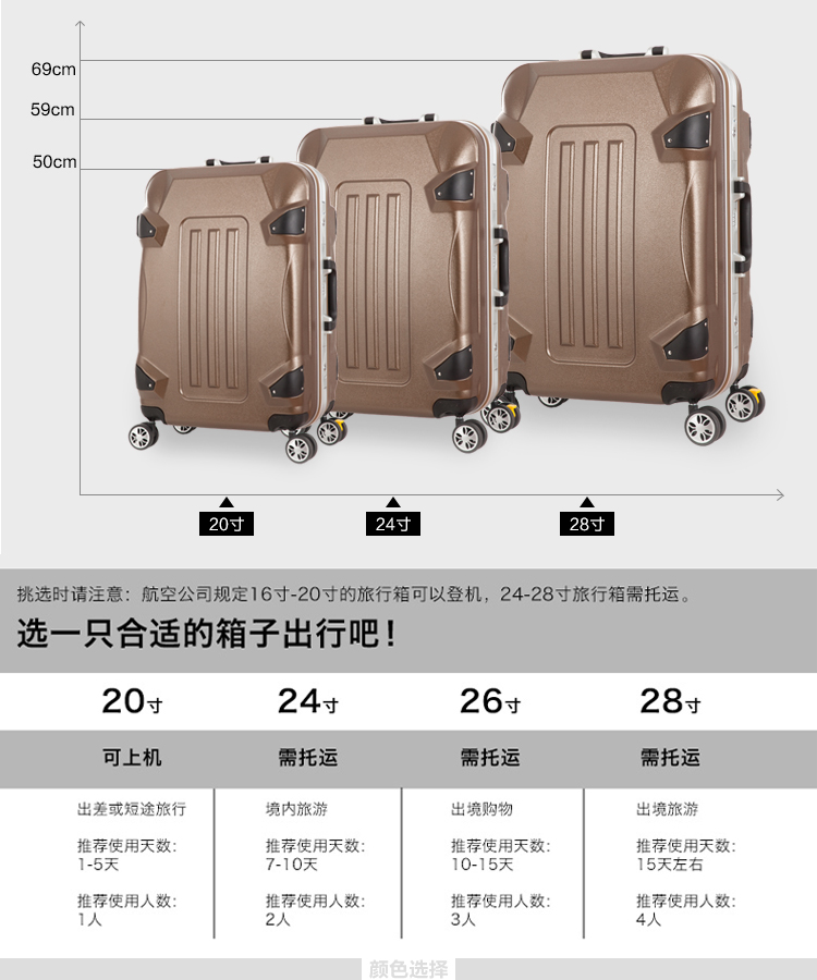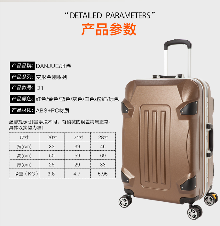 丹爵(DANJUE)20/24/28寸时尚大容量PC+ABS拉杆箱登机箱多色可选旅行箱D1 24寸