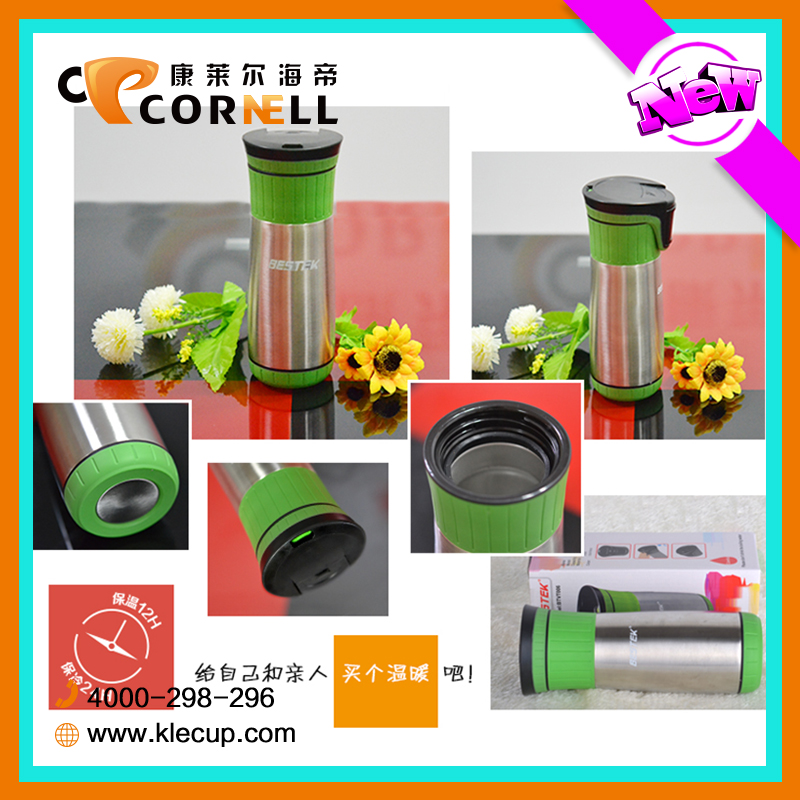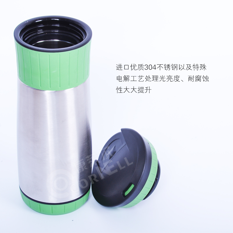 产品型号:KLE-ZB029J17 产品容量:450ml 产品材质:双层不锈钢 产品包装:OPP袋+彩盒 产品颜色:绿色 |