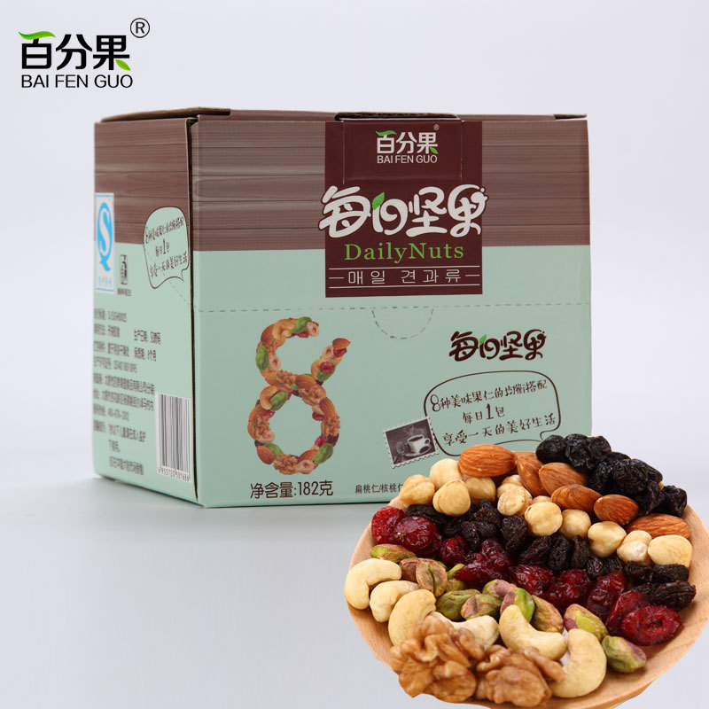 百分果 每日坚果8种混合果仁7天装26g*7袋182g年货礼包