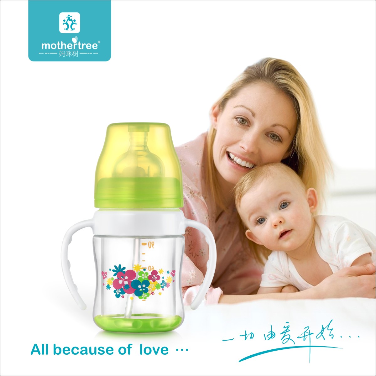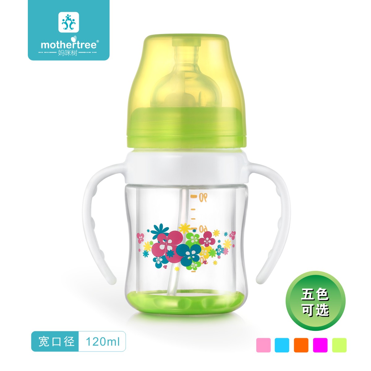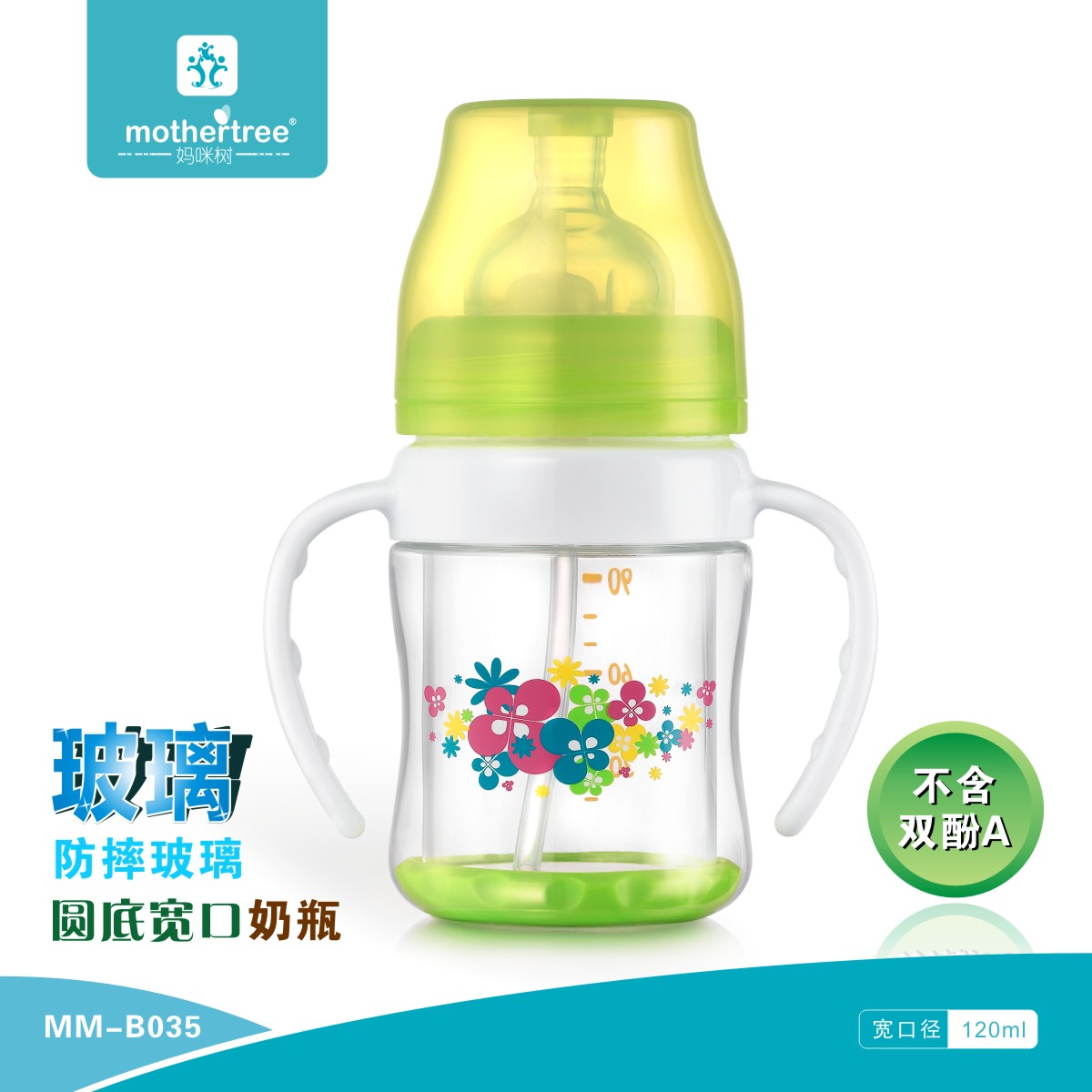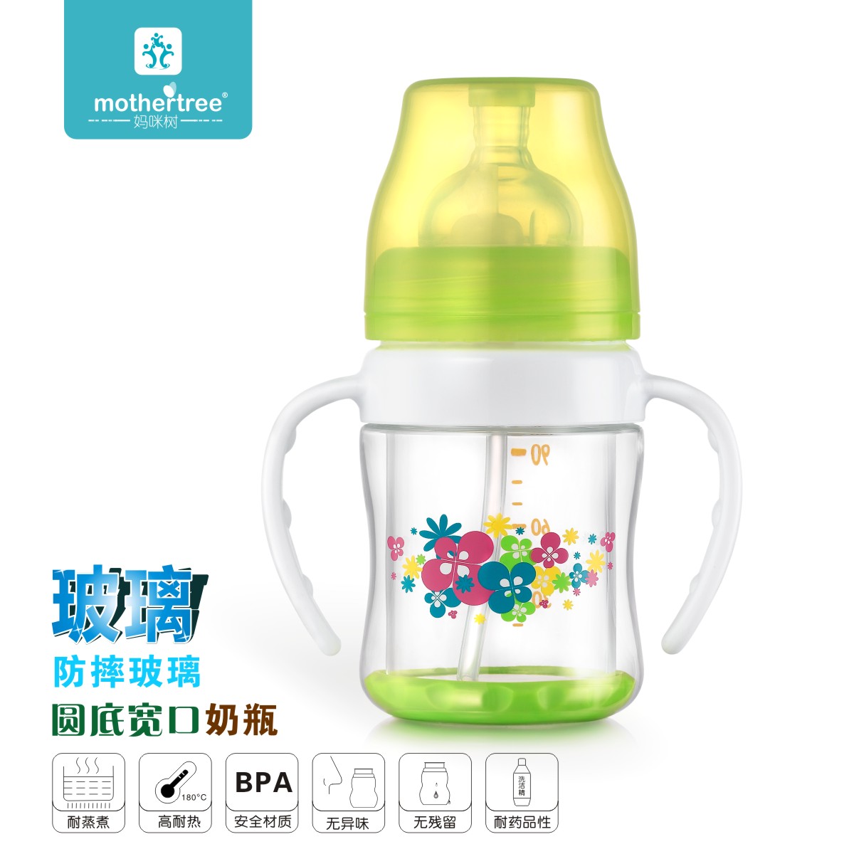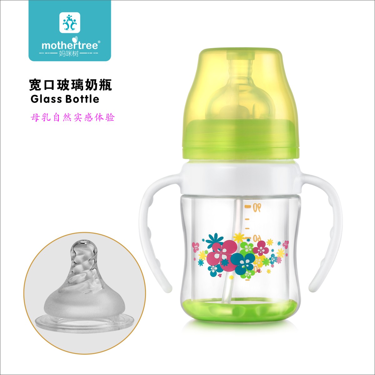 妈咪树宽口高硼硅含底座防摔带手柄新生婴儿宝宝奶瓶