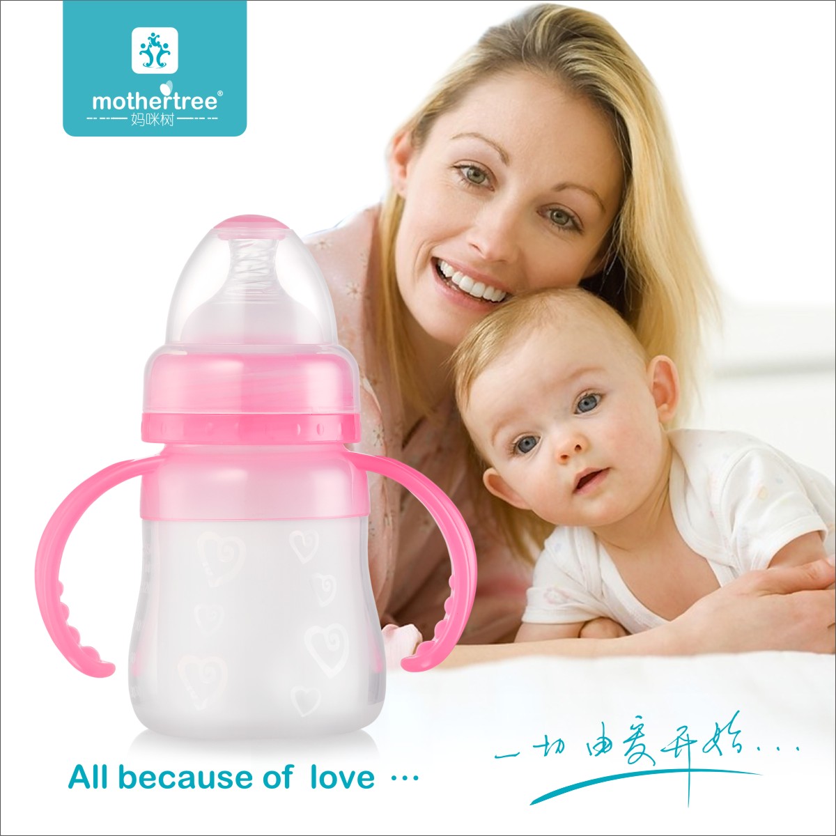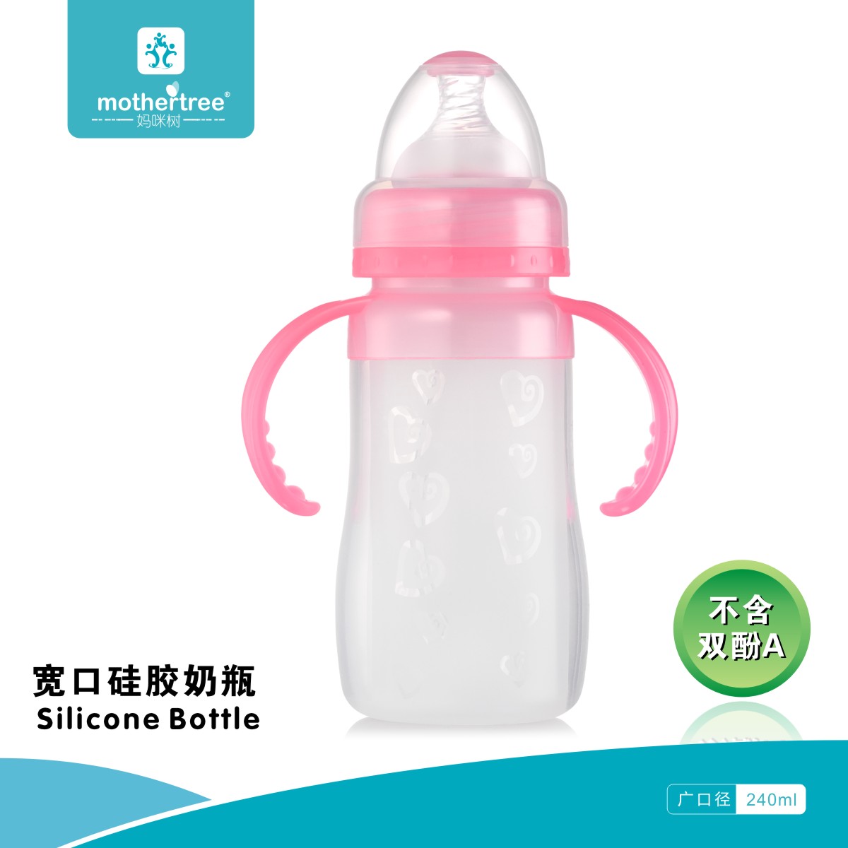 妈咪树宽口防胀气硅胶带手柄耐高温防摔高档新生婴儿宝宝健康奶瓶