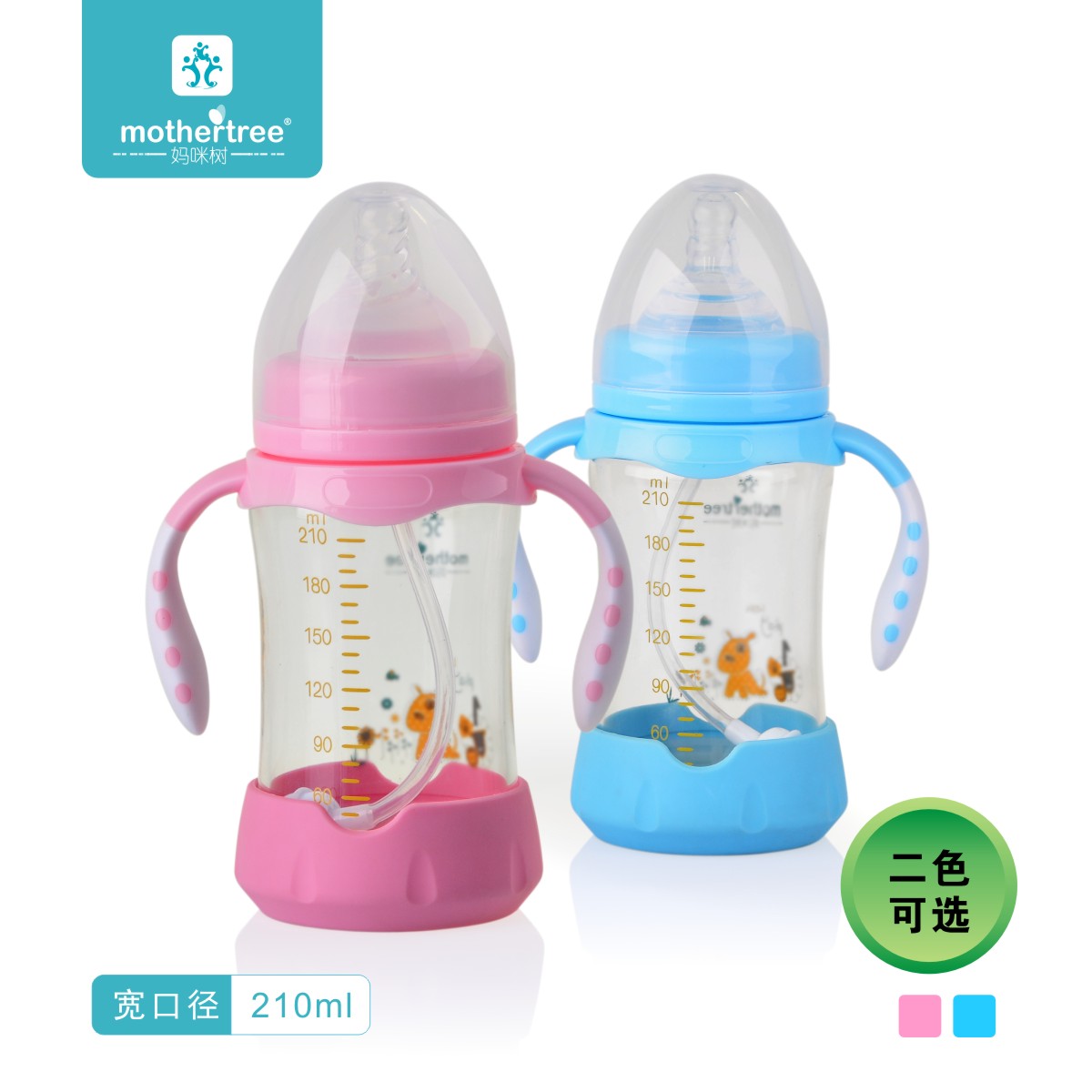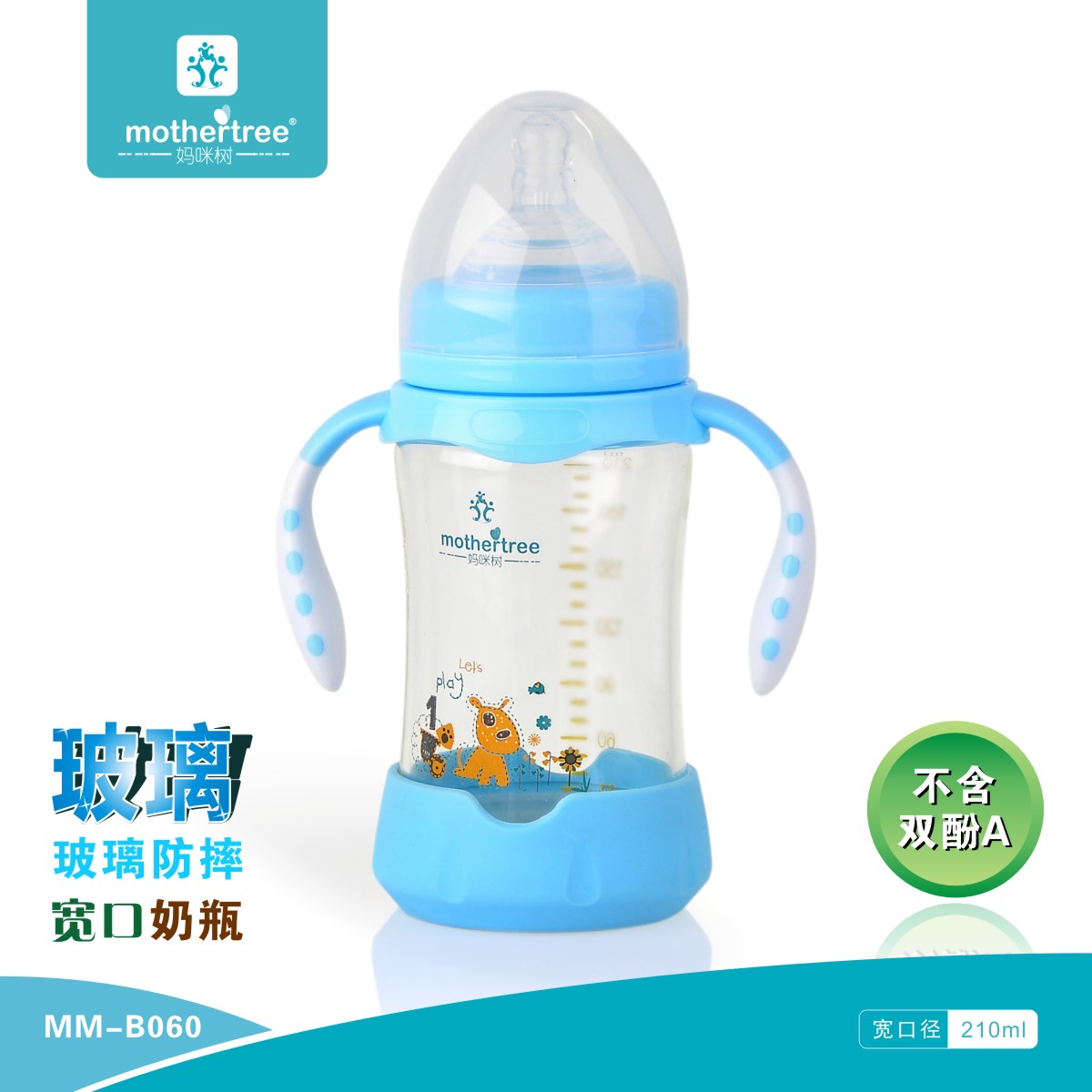 妈咪树宽口径防呛奶高硼硅玻璃带手柄含底座防摔新生婴儿宝宝奶瓶