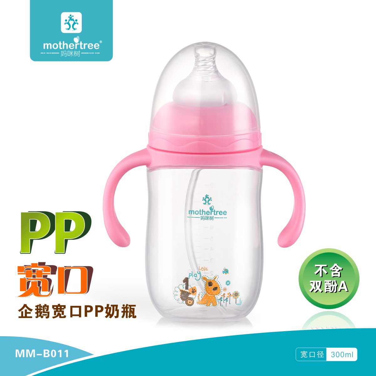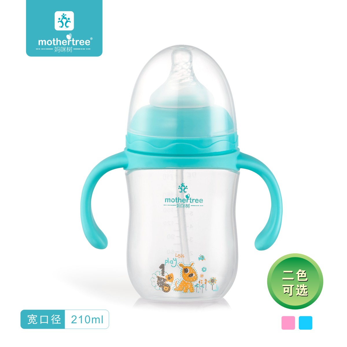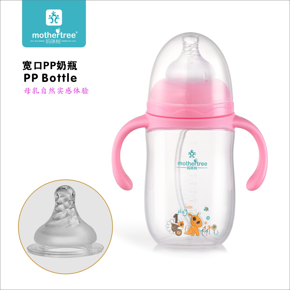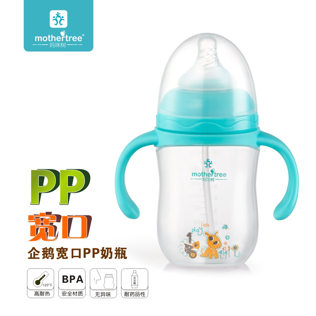 妈咪树宽口径PP健康材质无异味带手柄母乳实感新生婴儿宝宝奶瓶