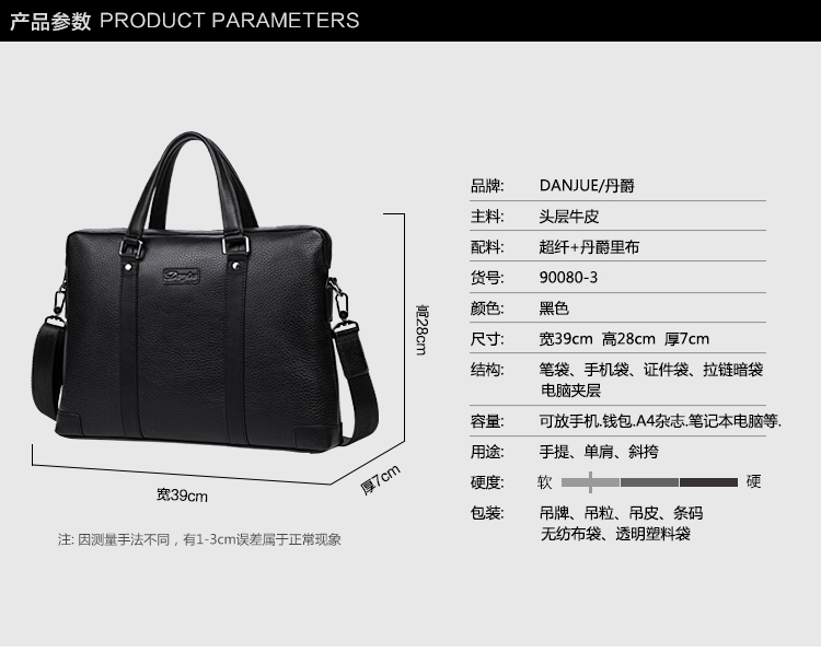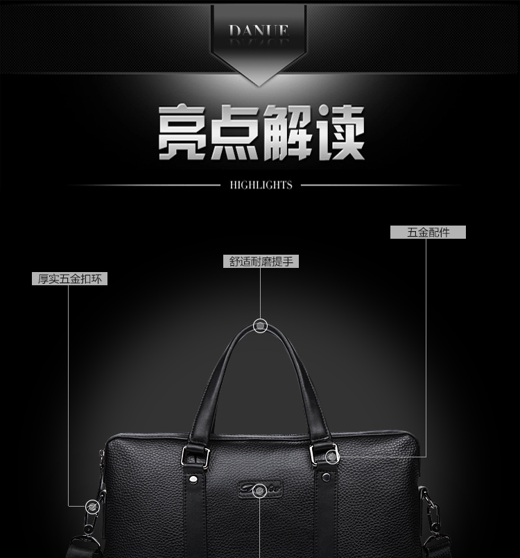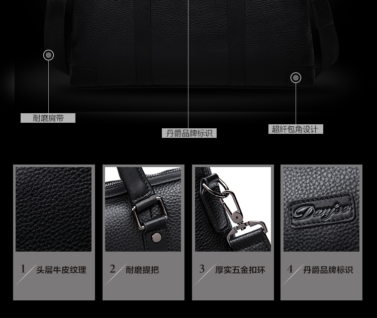 丹爵(DANJUE)新款头层牛皮单肩斜挎包手提公文包电脑包公事包男包D90080-3