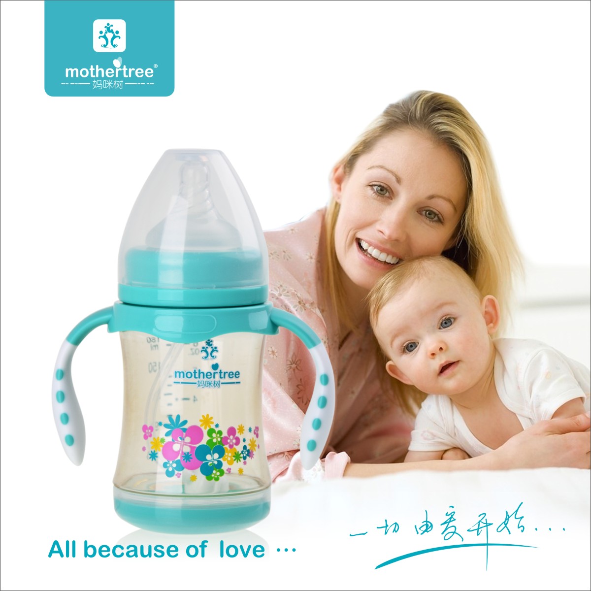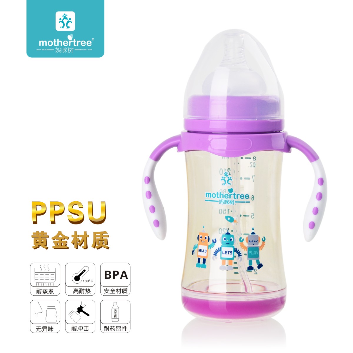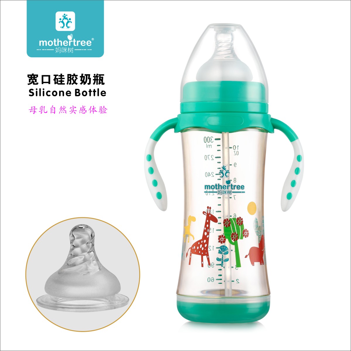 妈咪树感温底座宽口PPSU带手柄防摔液体硅胶奶嘴母乳实感婴儿奶瓶