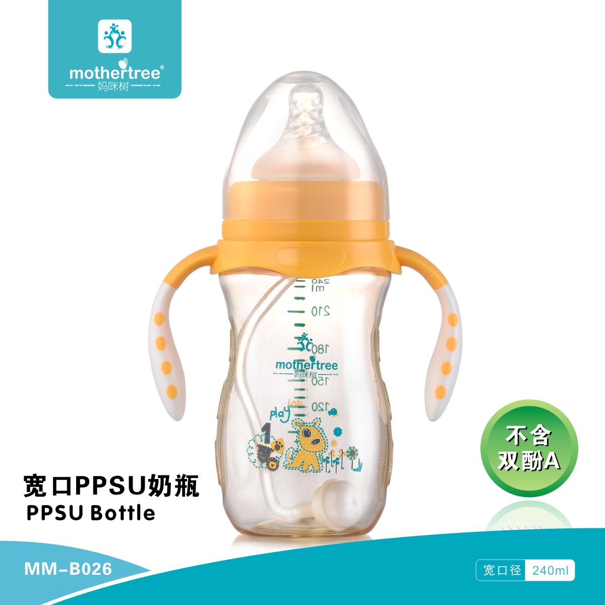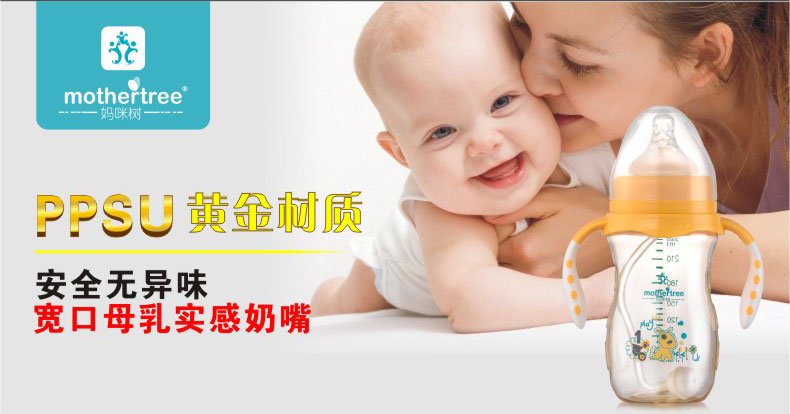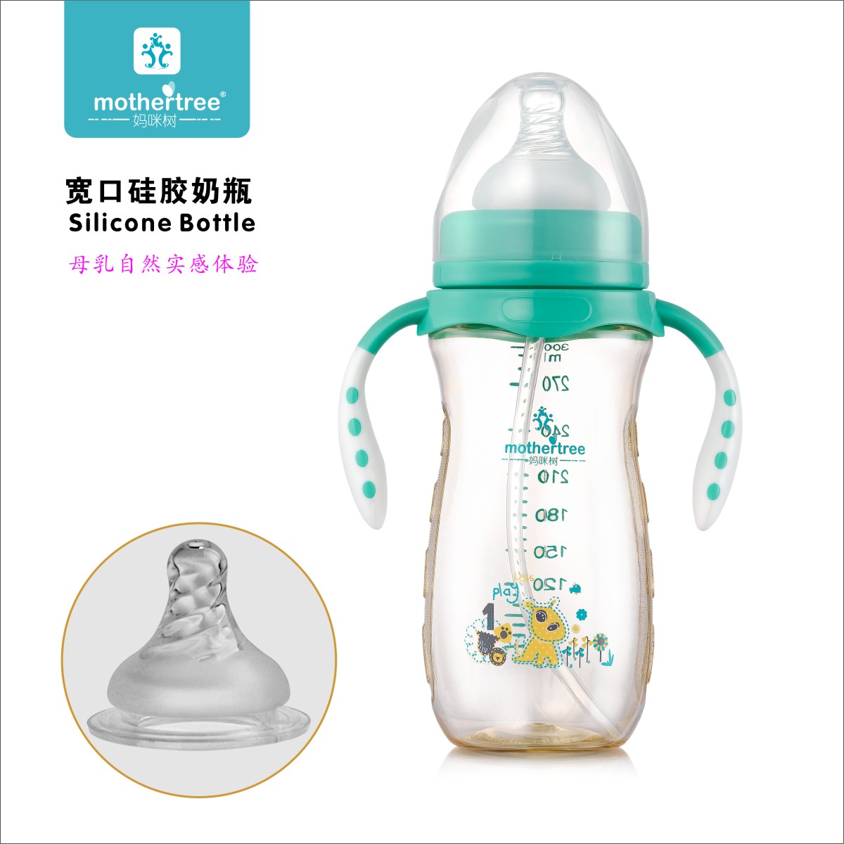 妈咪树ppsu宽口径硅胶母乳防胀气无异味实感带柄新生婴儿宝宝奶瓶