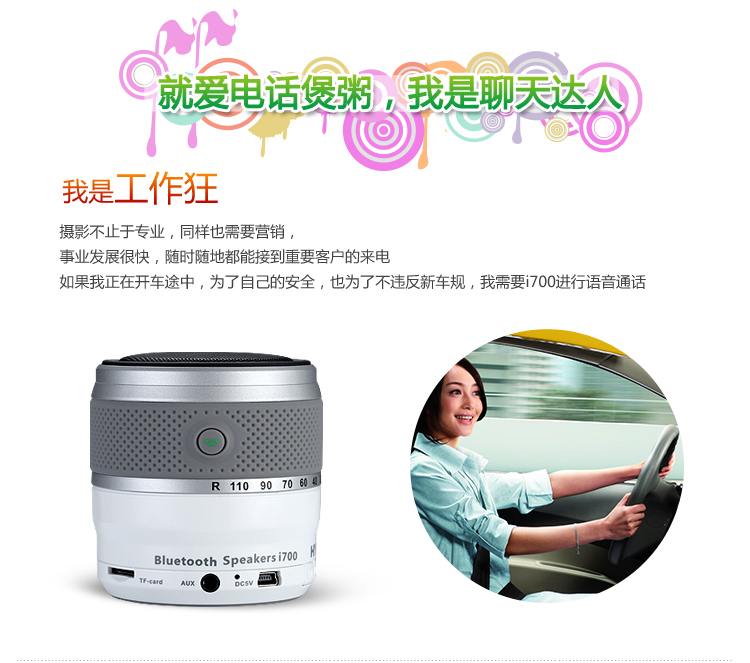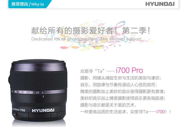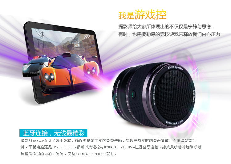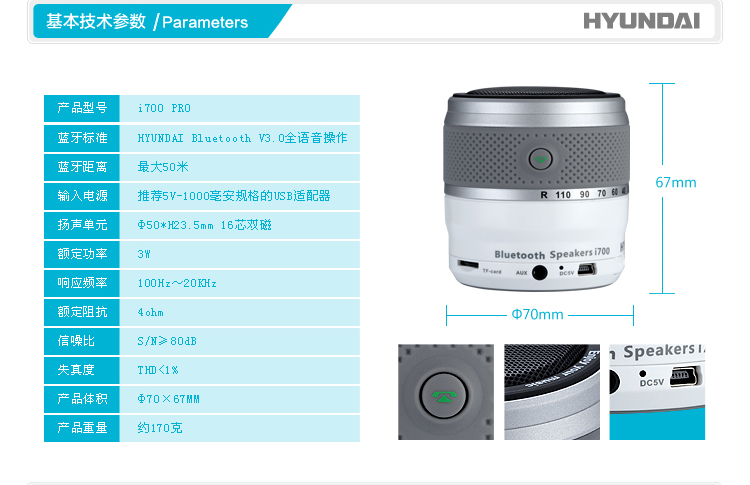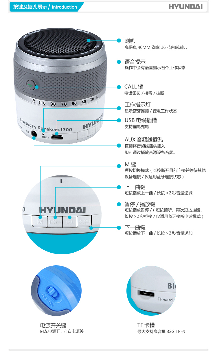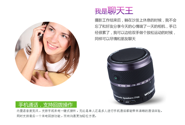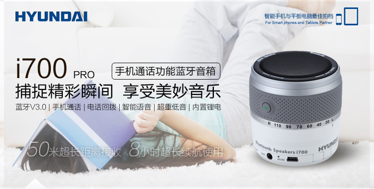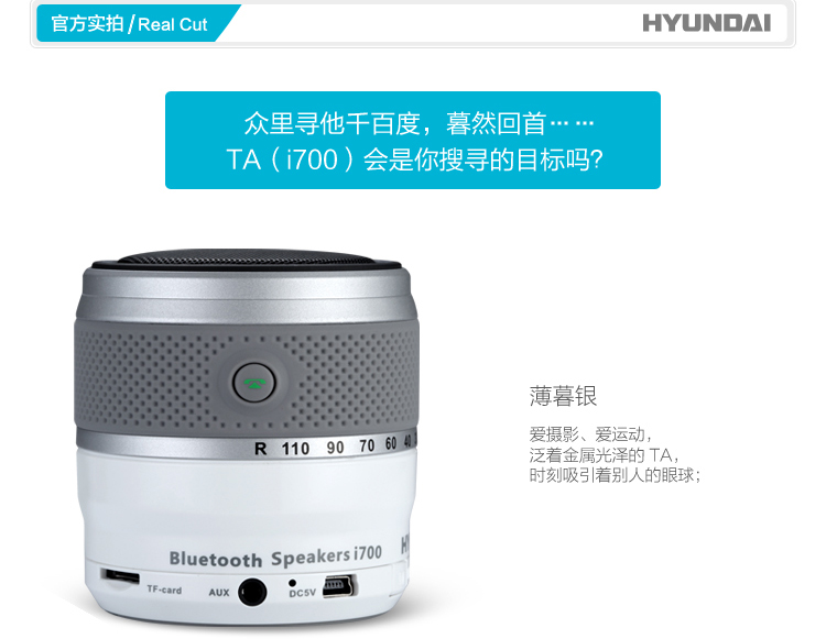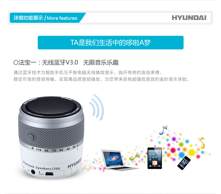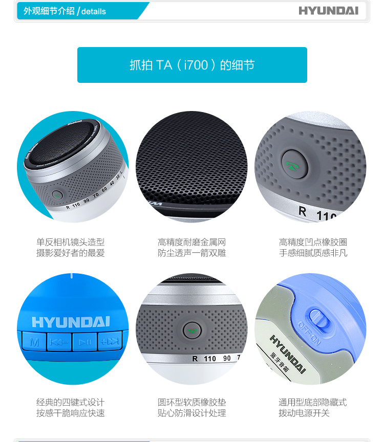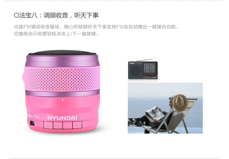 现代(HYUNDAI) I700无线蓝牙音响插卡迷你低音炮电脑手机音箱通话 FM调频