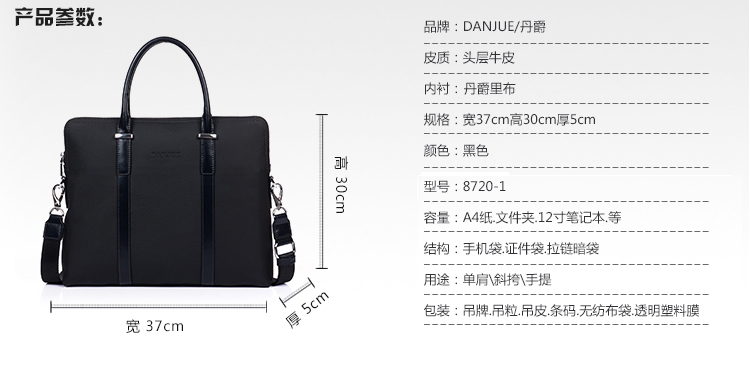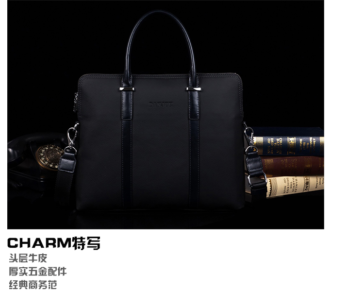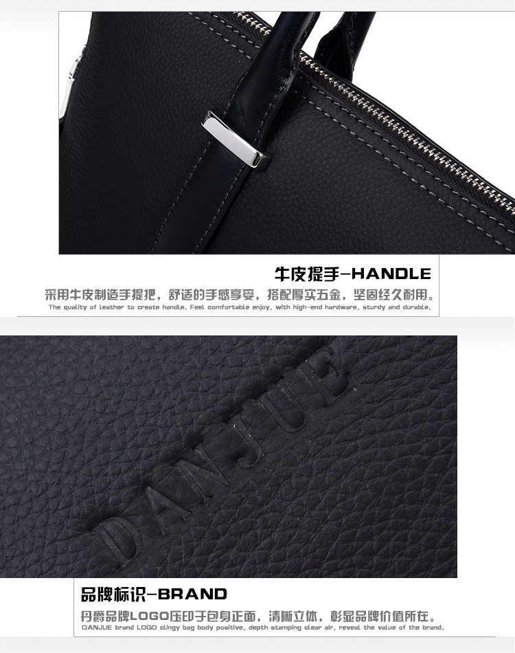丹爵(DANJUE)商务公文手提包单肩斜挎包男士包时尚韩版头层牛皮男士挎包8720-1
