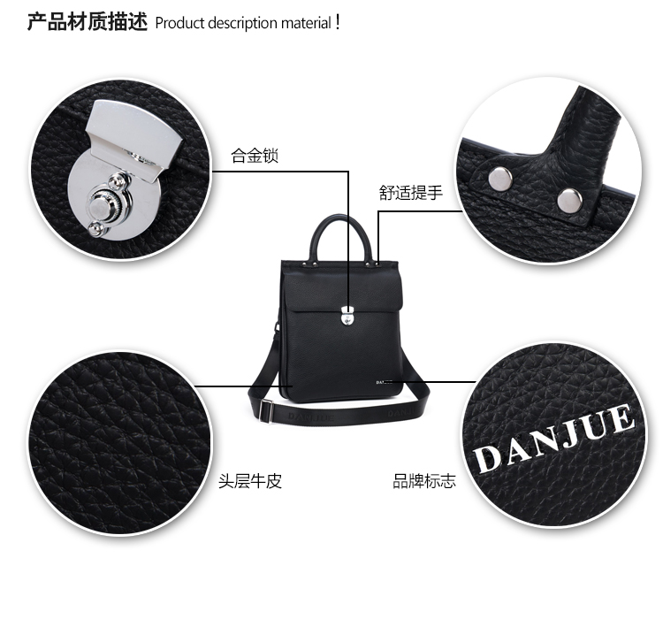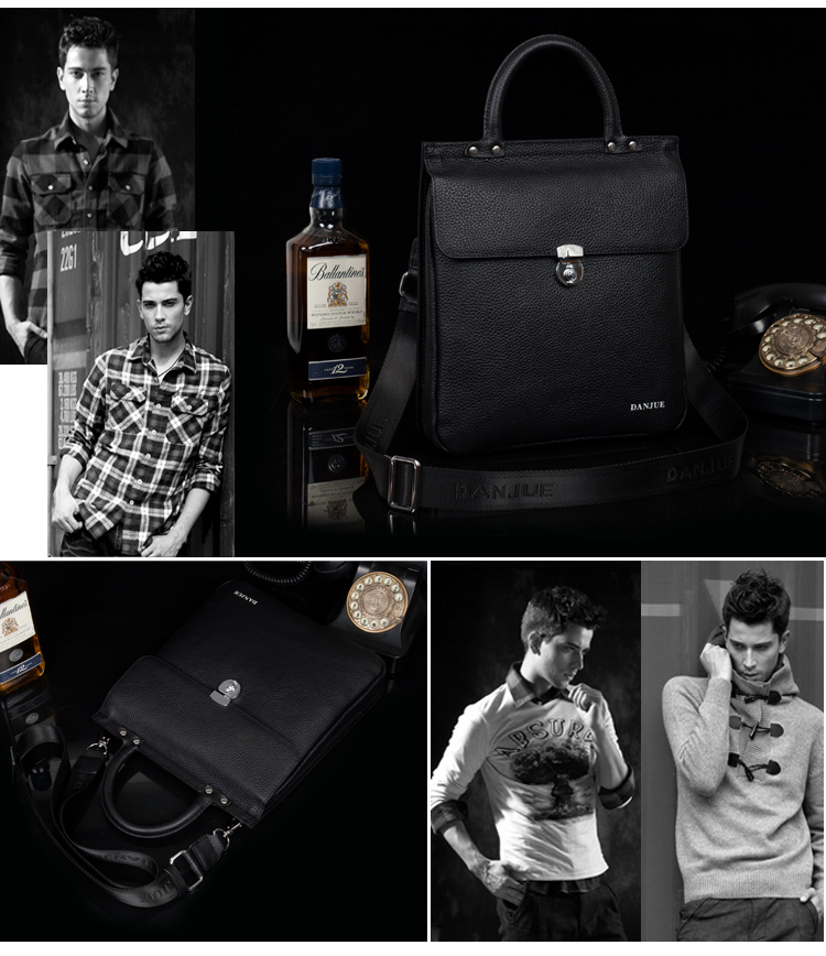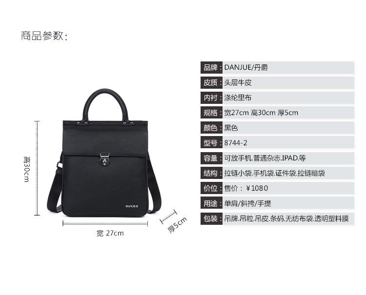 丹爵(DANJUE)男头层牛皮手提单肩男包男士潮包商务休闲8744-2