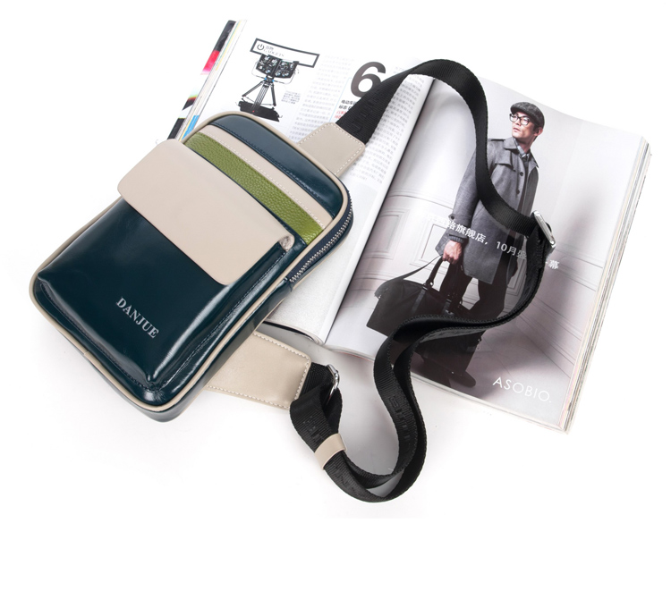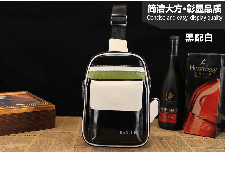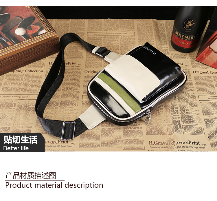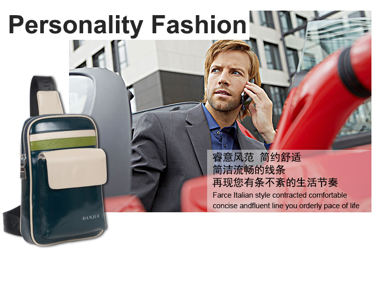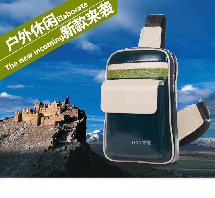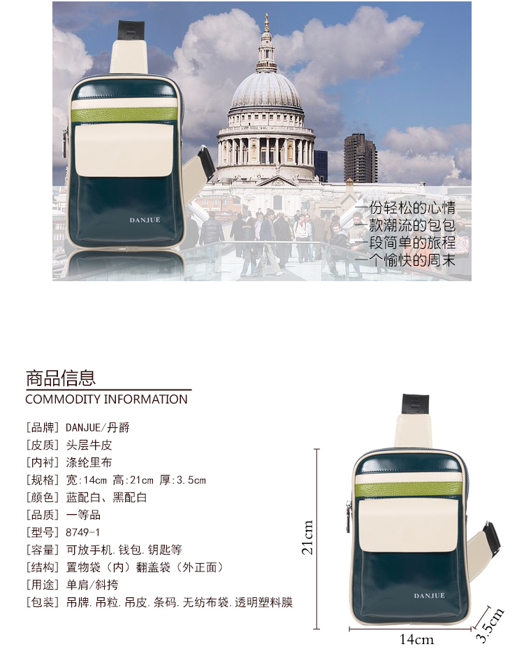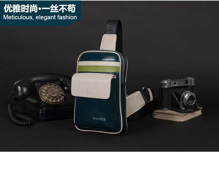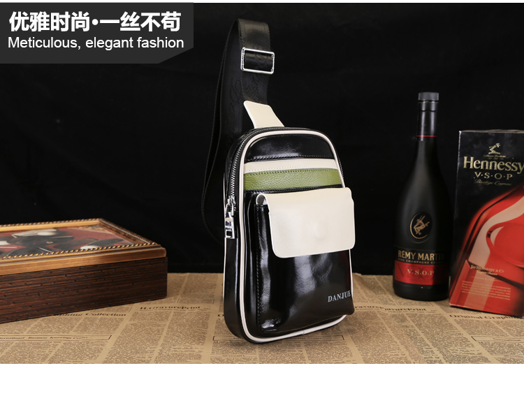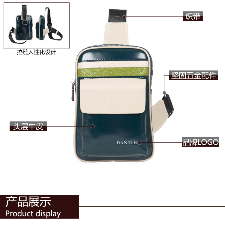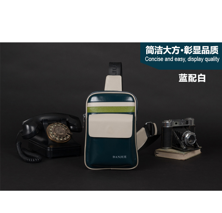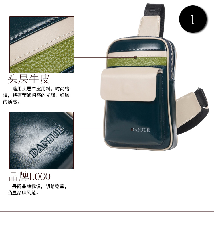 丹爵(DANJUE)男士胸包头层牛皮时尚休闲单肩斜挎包男式小包潮流男款胸包8749-1