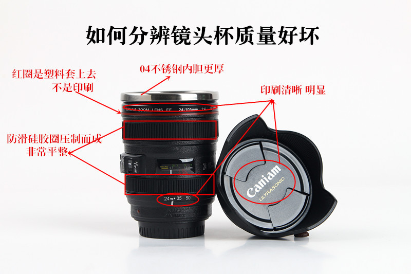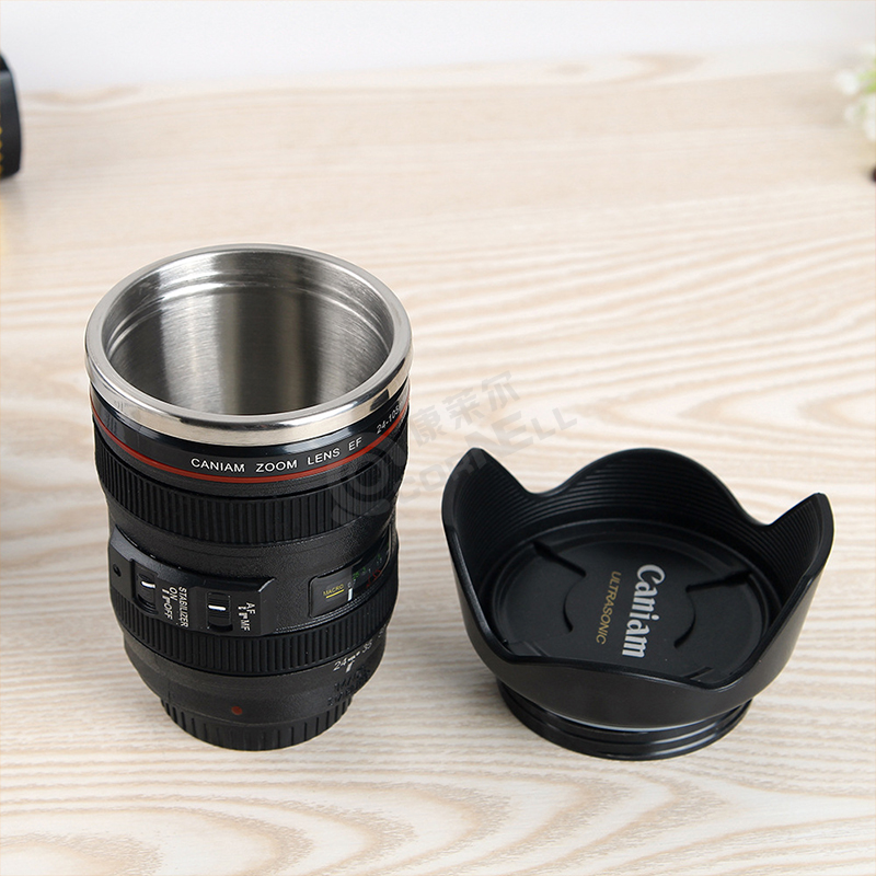 产品名称:镜头杯 产品型号:KLE-J014 产品容量:400ml 产品材质:内钢外塑料 产品包装:OPP袋+彩盒 产品颜色:黑色 |