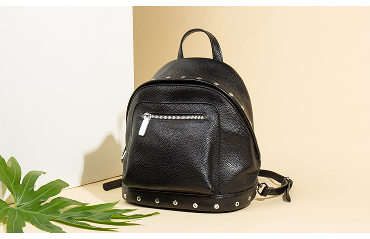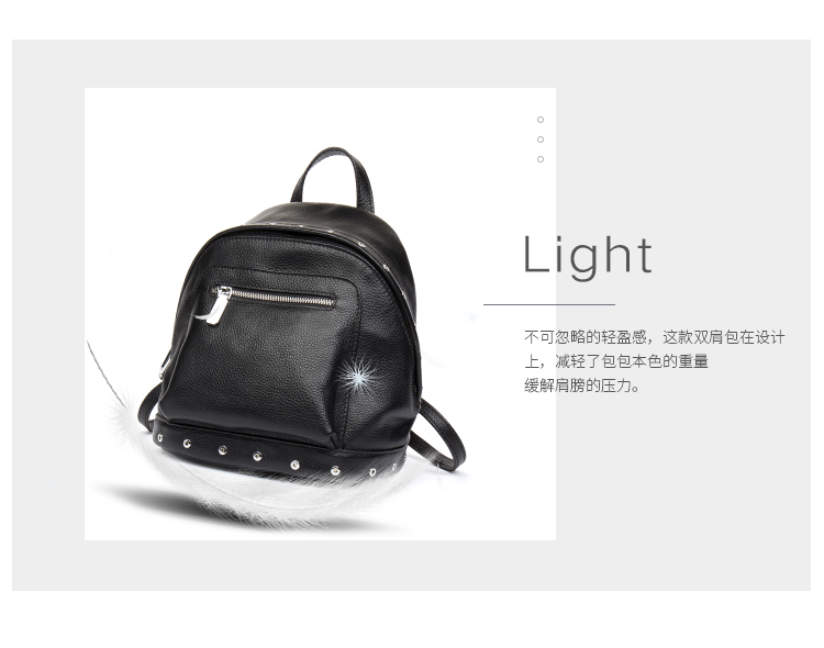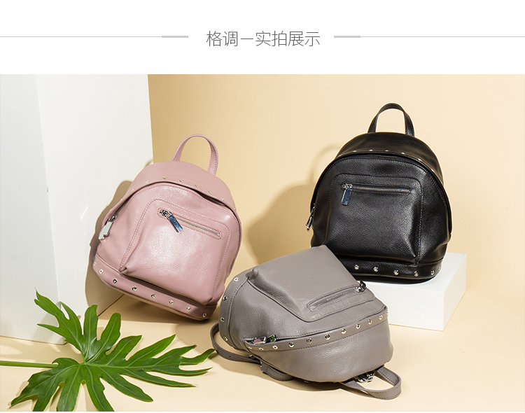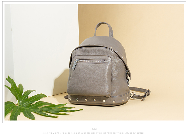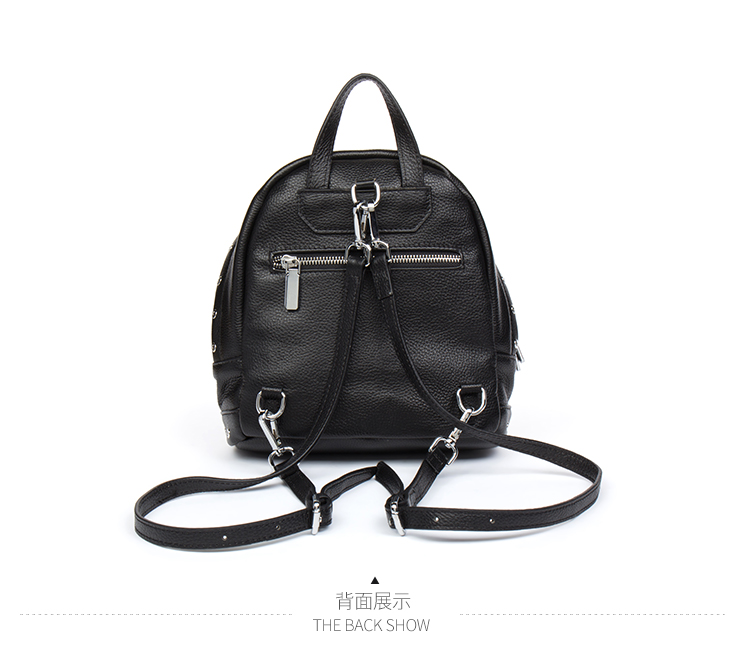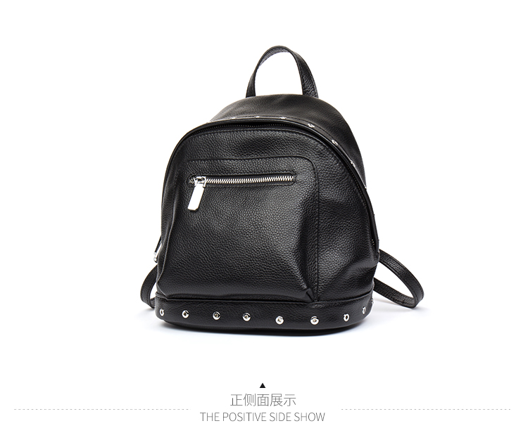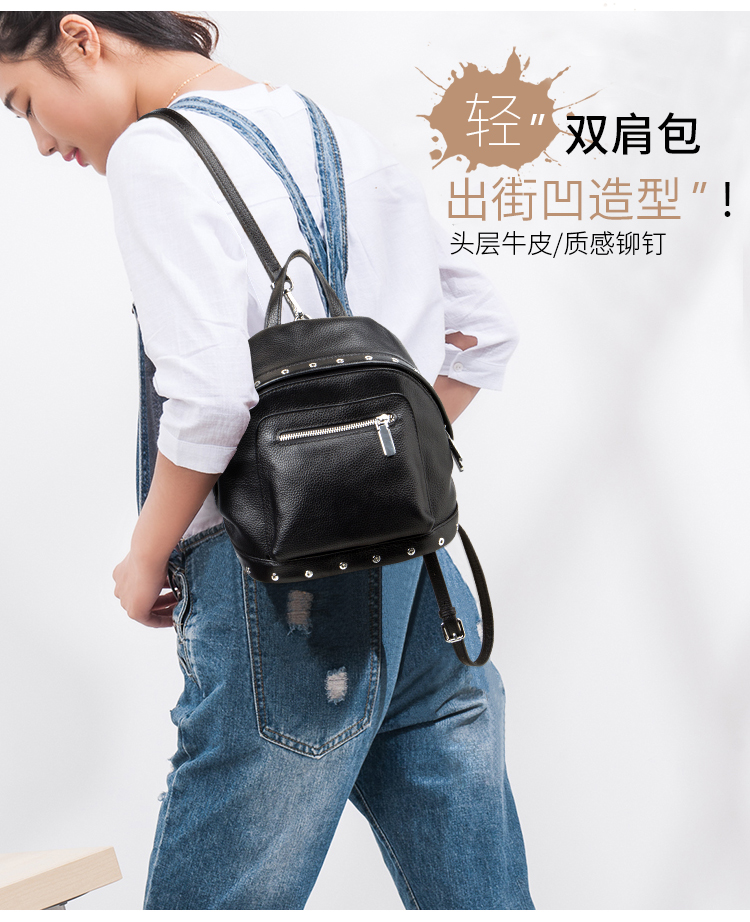 海谜璃(HMILY)欧美头层牛皮女士铆钉双肩包简洁大容量背包街头百搭吸晴女包 H6995