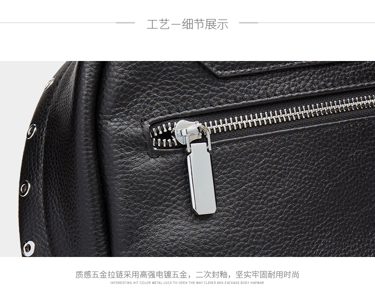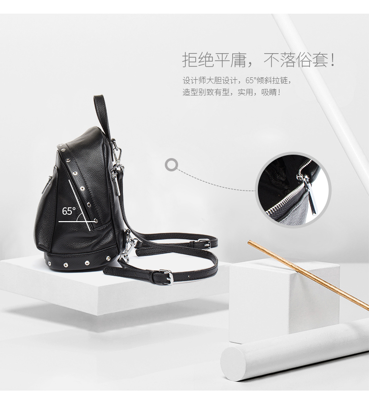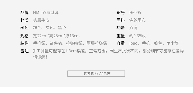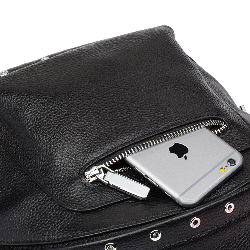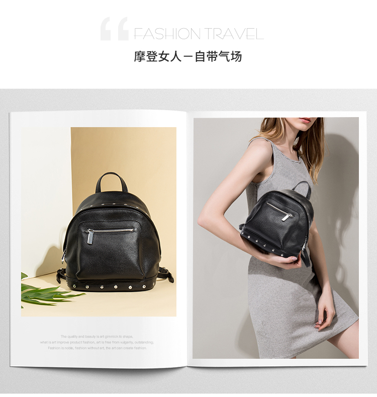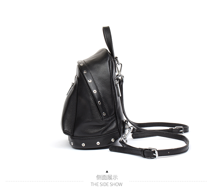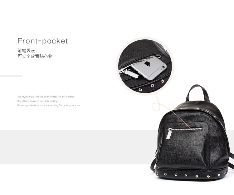 海谜璃(HMILY)欧美头层牛皮女士铆钉双肩包简洁大容量背包街头百搭吸晴女包 H6995