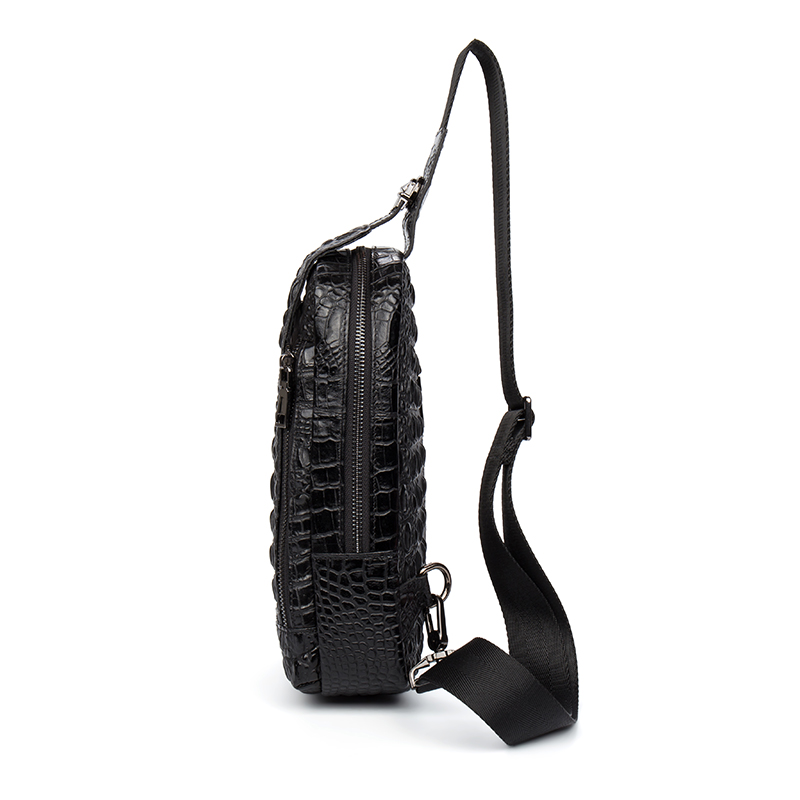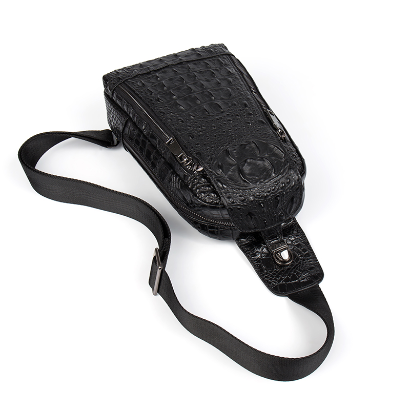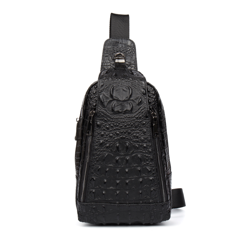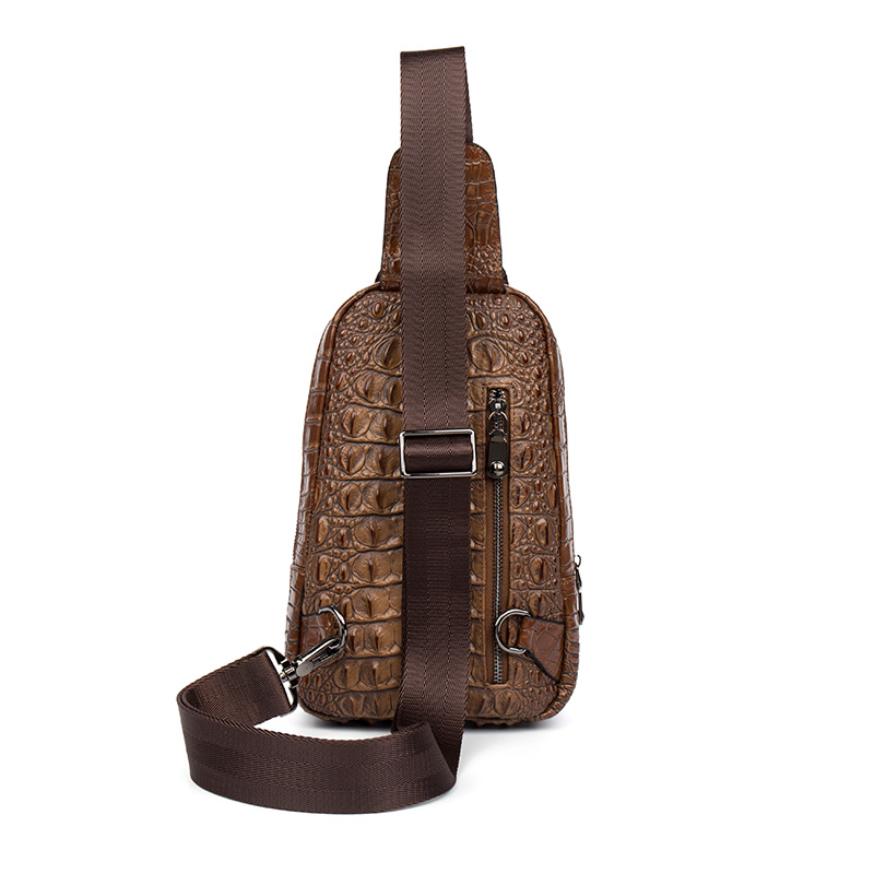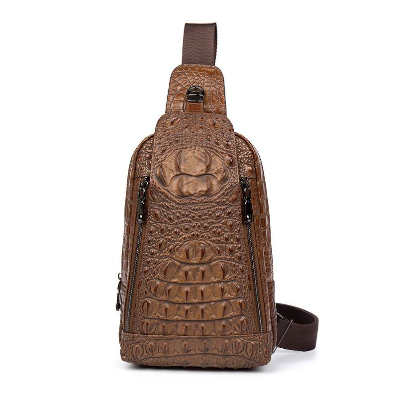 丹爵(DANJUE)新款头层牛皮男士胸包 鳄鱼纹压花胸腰包 休闲运动单肩斜挎包D210-1