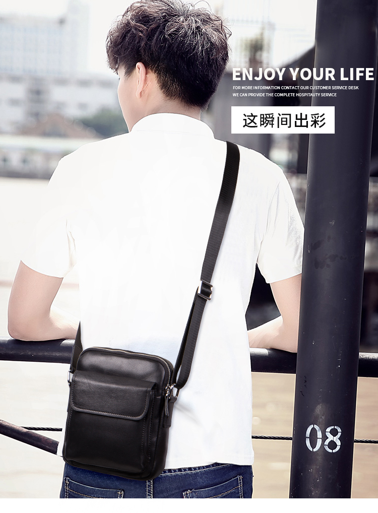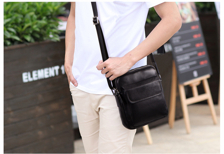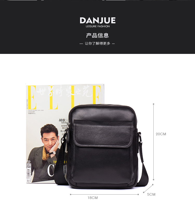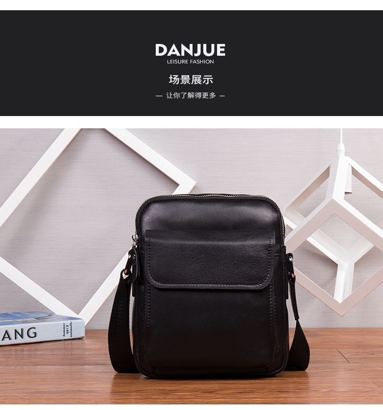 丹爵(DANJUE)新款男士头层牛皮优质皮包简约大方单肩包精美别致斜挎男包 D215-1