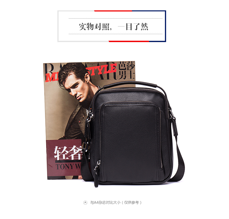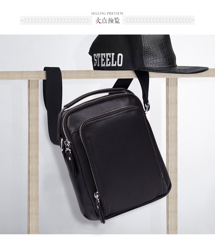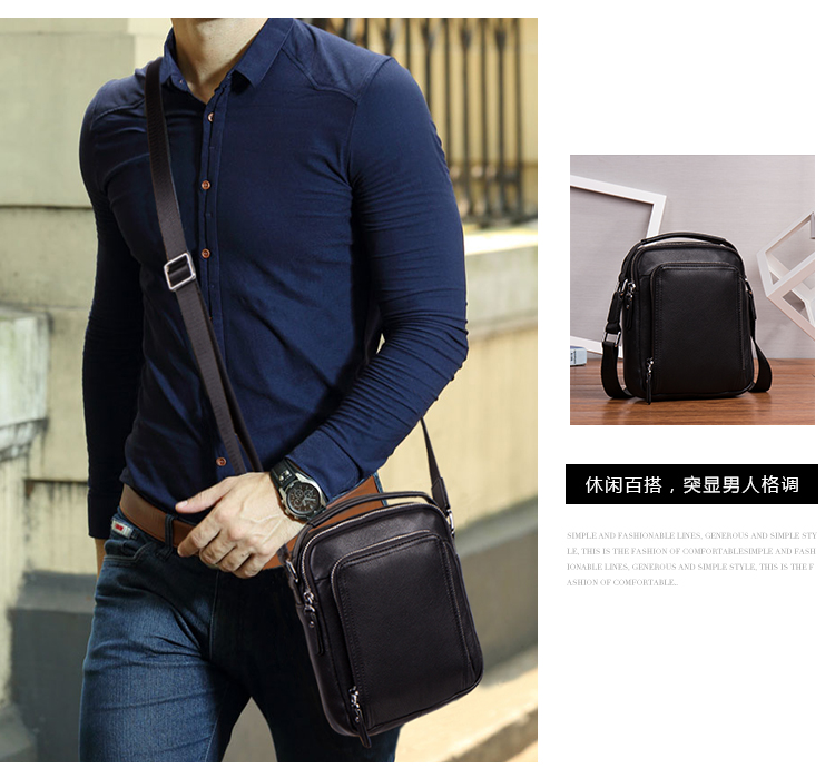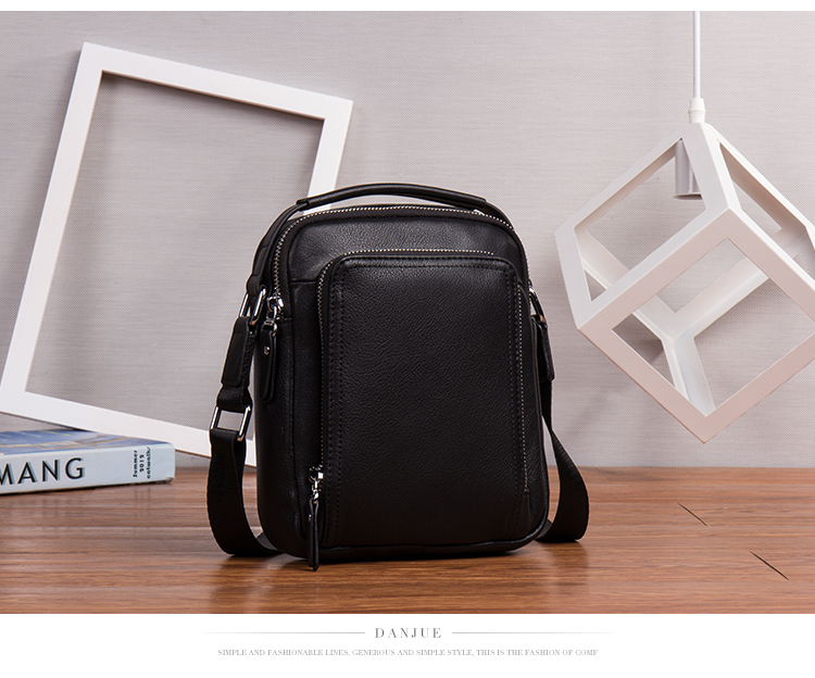 丹爵(DANJUE)新款男士头层牛皮单肩包简约休闲斜挎小包时尚百搭大容量男包 D216-1