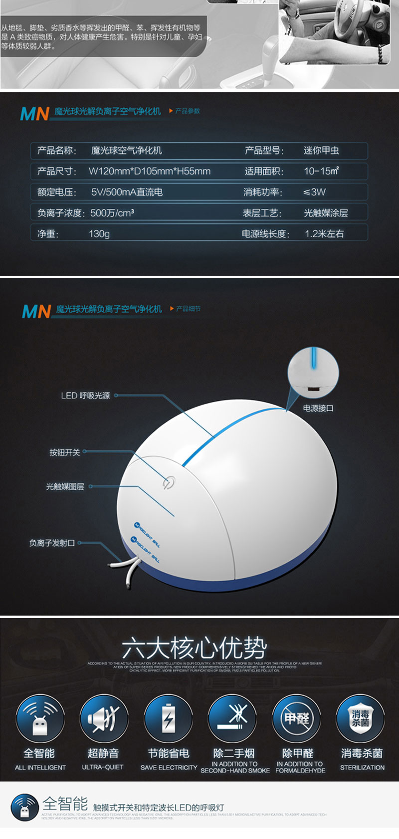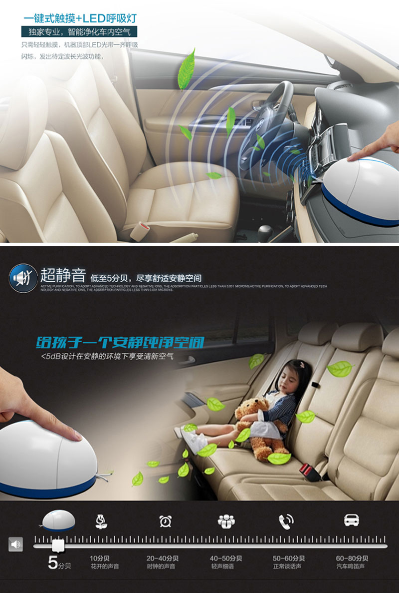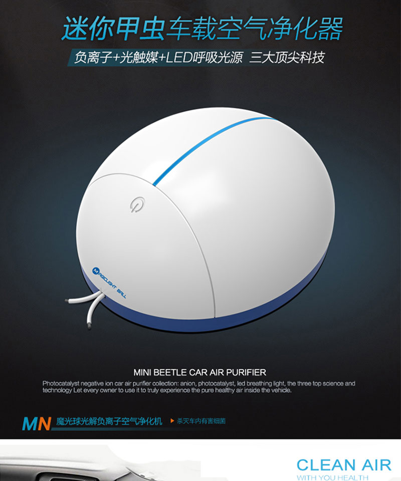 4、兼具装饰室内、车内空间,美化环境的效果。独特的外型,时尚、小巧、非常酷,就像甲虫似的,净化功能非常强。