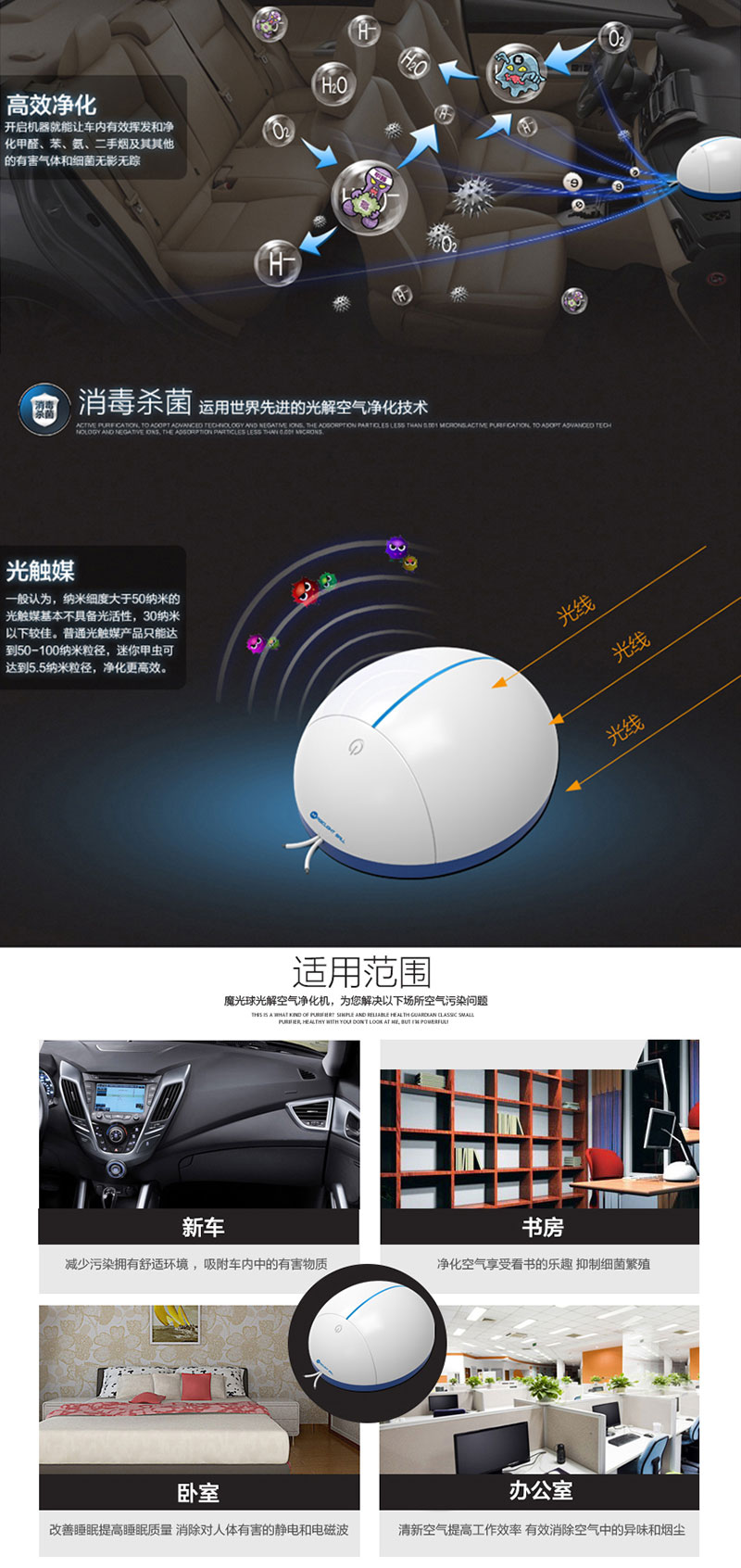 1、引进日本、美国最新的光触媒负离子净化技术