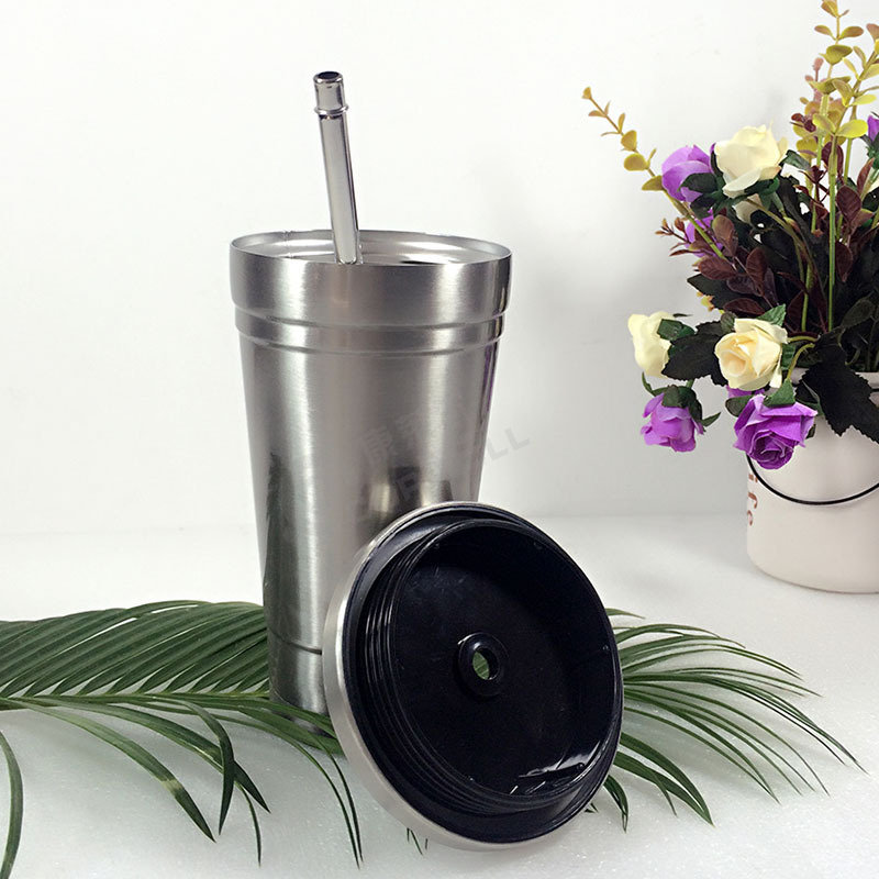 产品名称:吸管杯 产品型号:KLE-SX078J17 产品材质:双层不锈钢 产品容量:500ml 产品包装:OPP袋+白盒 产品颜色:随机色发货