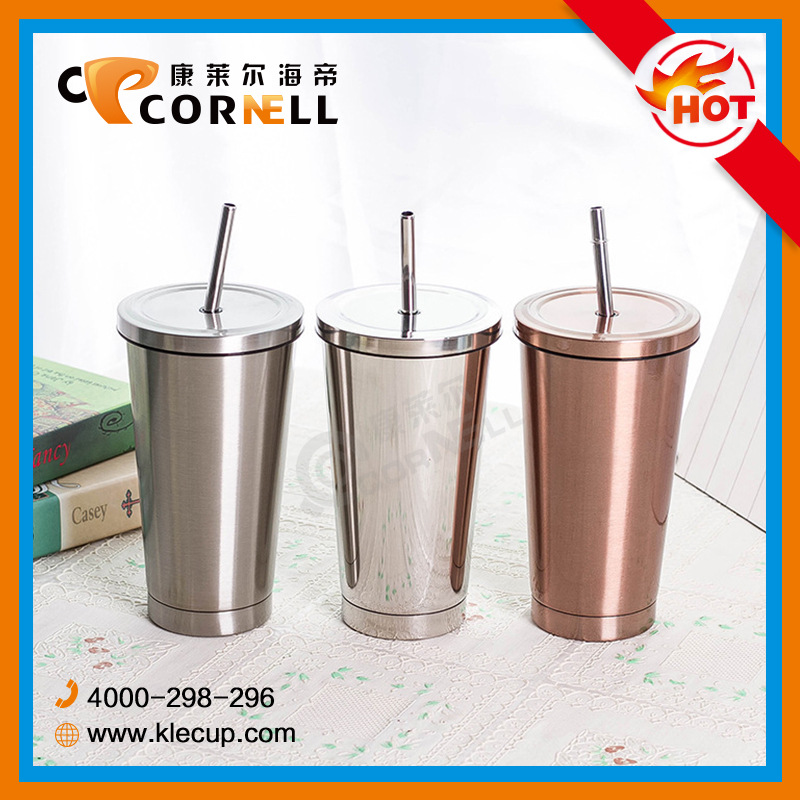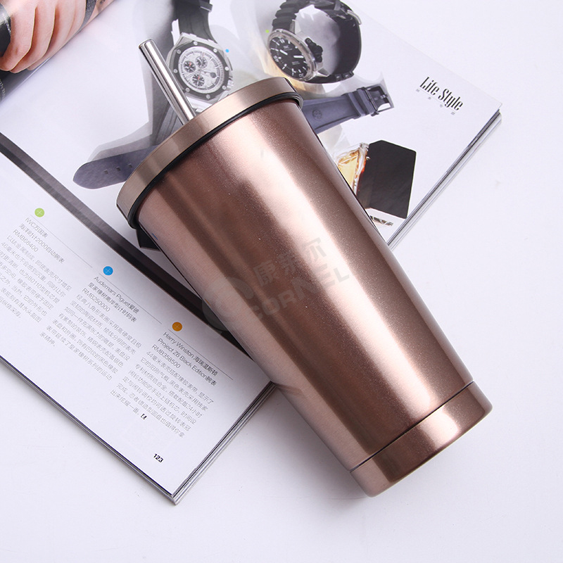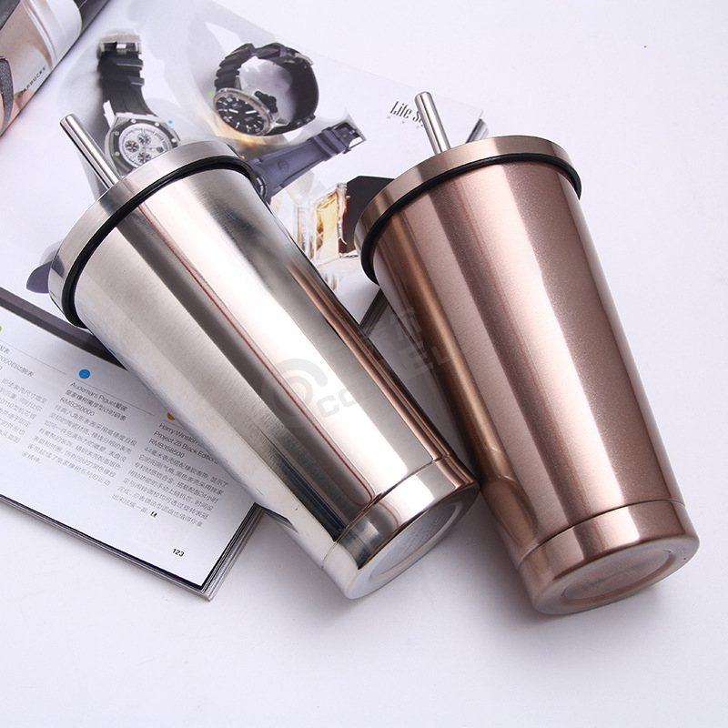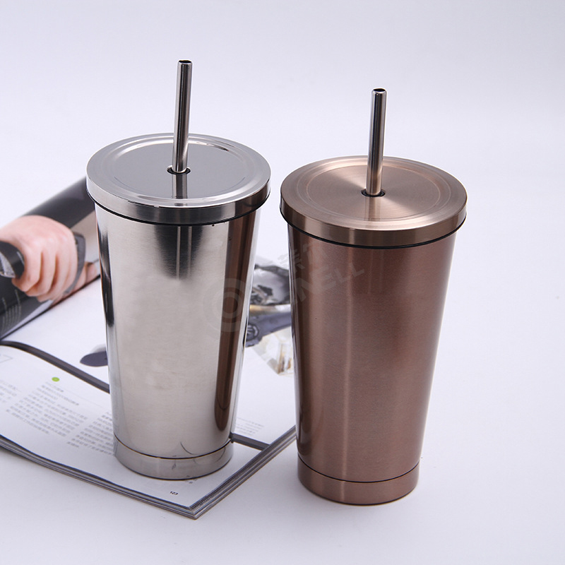 产品名称:吸管杯 产品型号:KLE-SX078 产品材质:双层不锈钢 产品容量:500ml 产品包装:OPP袋+白盒 产品颜色:随机色发货