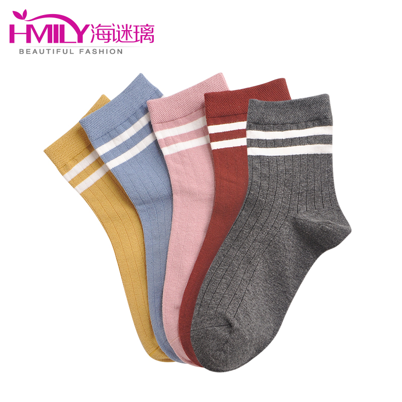 海谜璃(HMILY)时尚百搭棉质中筒袜复古森系短靴袜5双礼盒装 H9004