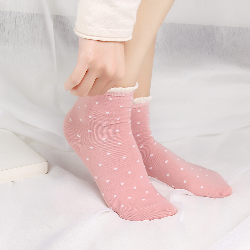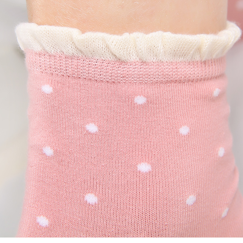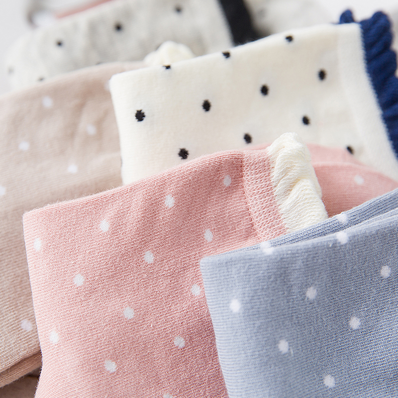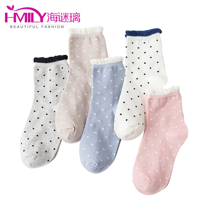 海谜璃(HMILY)棉质小清新保暖女袜可爱波点中筒袜5双礼盒装H9005