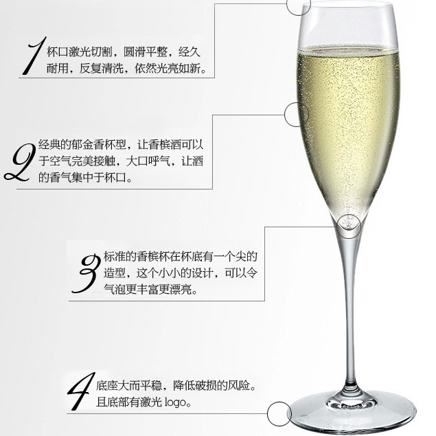 产地:意大利 材质:水晶玻璃 容量:250ml×2 激光冷切杯口,不仅超级平整更有着超薄的杯口 轻薄的杯身却拥有异乎寻常的牢固度及耐用性—源于Bormioli特有的XLT 技术处理; 杯底的特制U型,能带来更丰富的美妙气泡; 采用无铅材质,安全卫生。