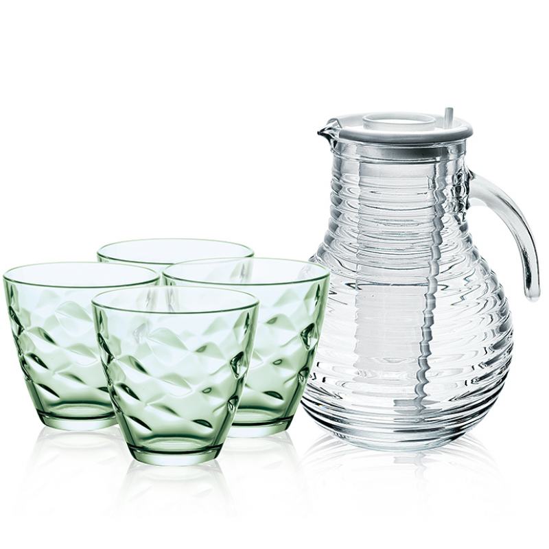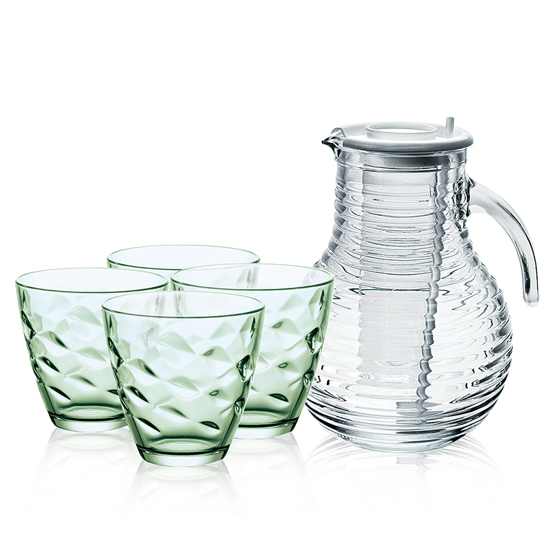 产地:意大利 材质:无铅玻璃,食品级PP 容量:水壶2.0L,波纹杯260ml