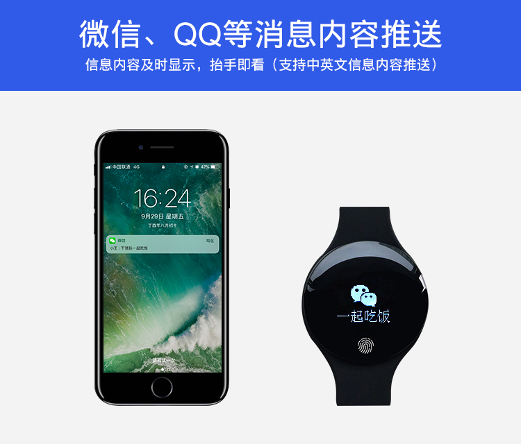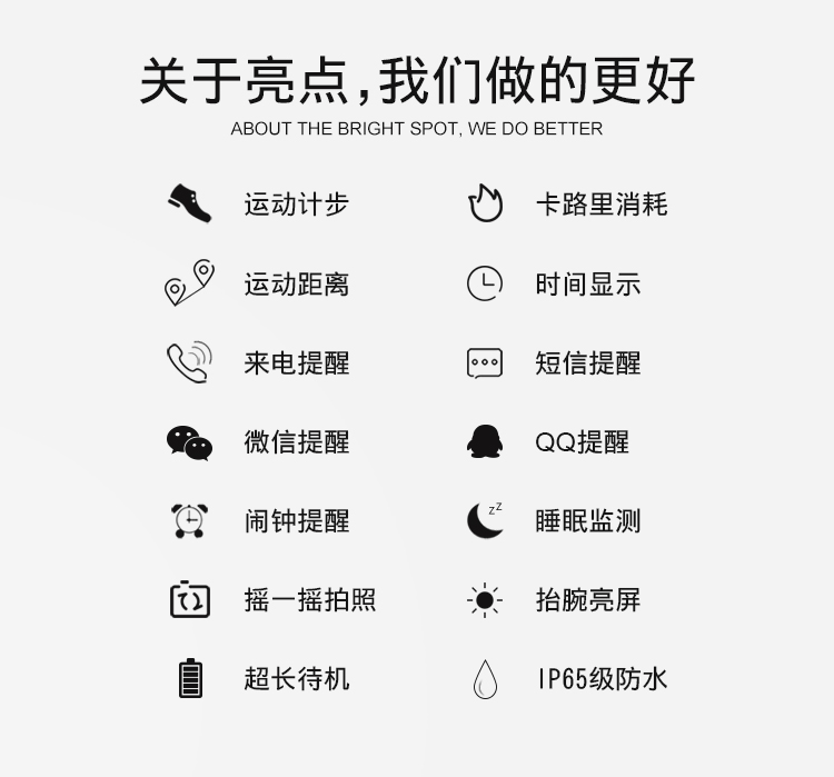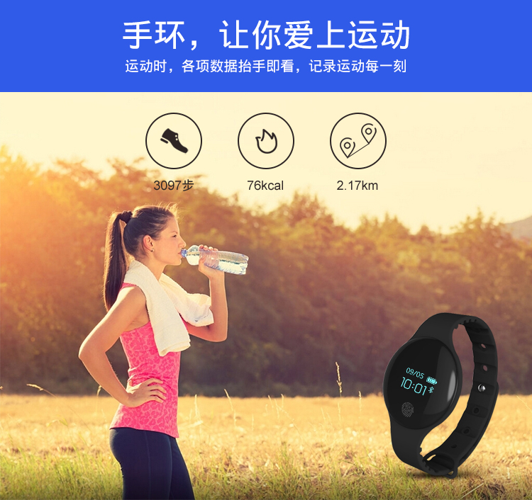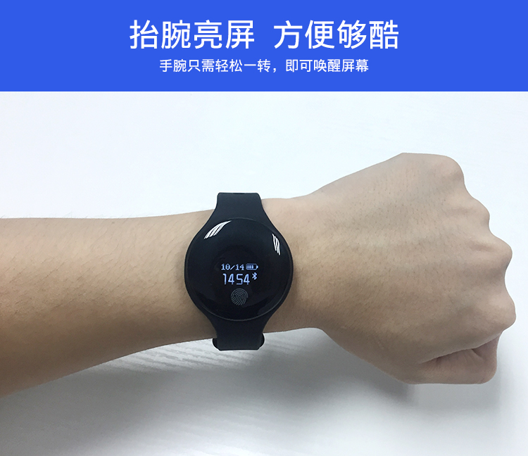 产品参数: 1、蓝牙4.0版本,0.66 OLED显示屏 2、输入电压:DC 5.0V.USB充电 3、腕带材质:硅胶 4、设备要求:支持Android 4.4、IOS 8及以上系统 5、电池容量50mAh,充电2小时,待机15天以上