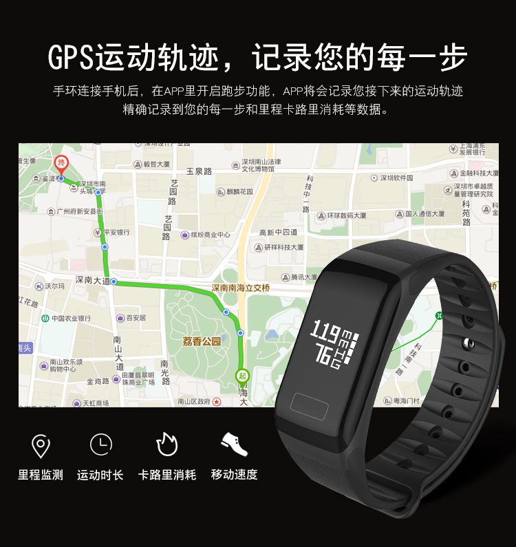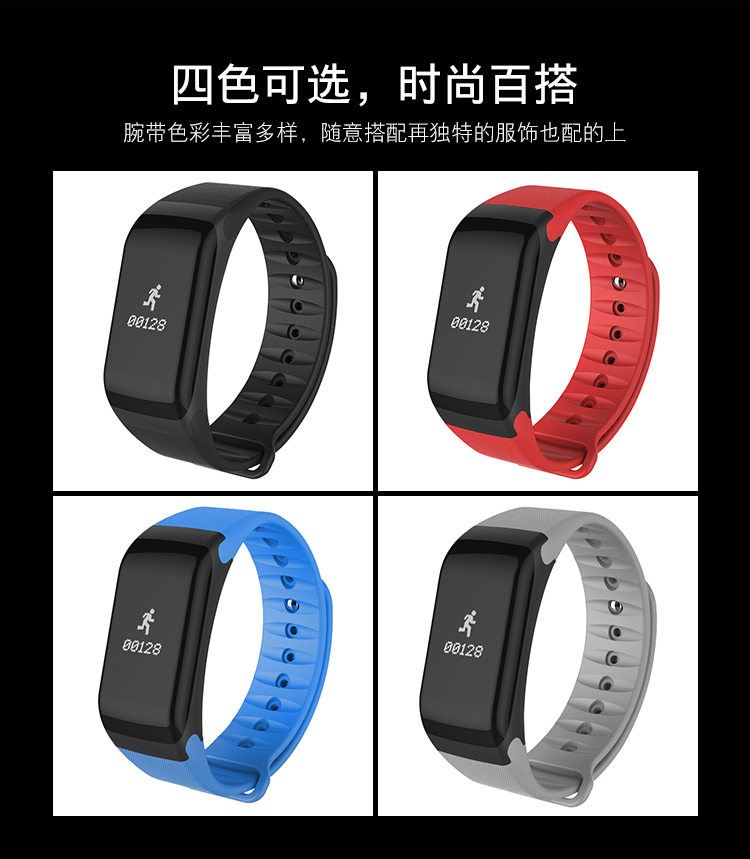 1、蓝牙芯片Nrf51822,0.66 OLED显示屏 2、主机塑胶材质,腕带TPU材质