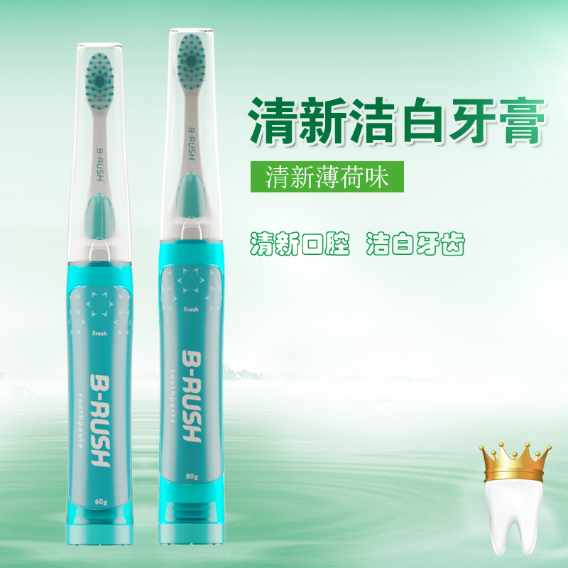 白立洁一体式牙刷牙膏/软毛/清新洁白牙膏78克
