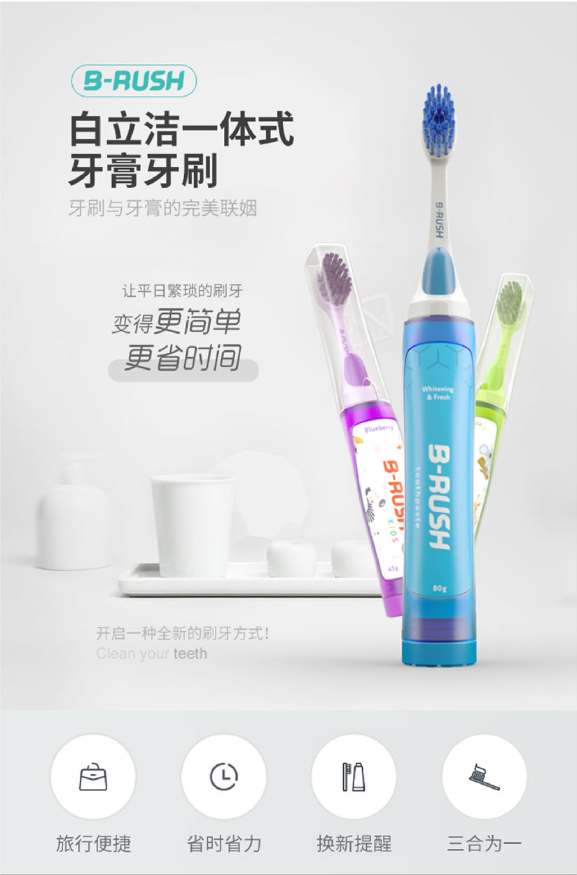 白立洁一体式牙刷牙膏/软毛/清新洁白牙膏68克