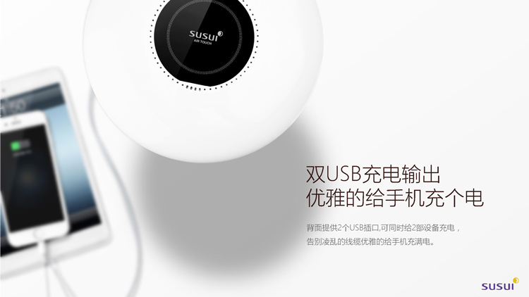 USB充电:2个USB接口,输出5V、2.1A电流,可供手机平板充电