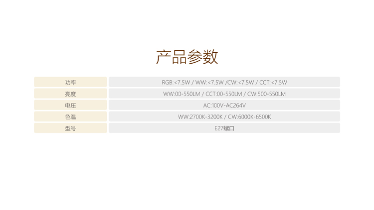 产品名称:舒睡星月智能舒眠灯 产品功率:7.5W 产品亮度:500-550LM 产品电压:AC100V-264V 产品型号:E27螺口