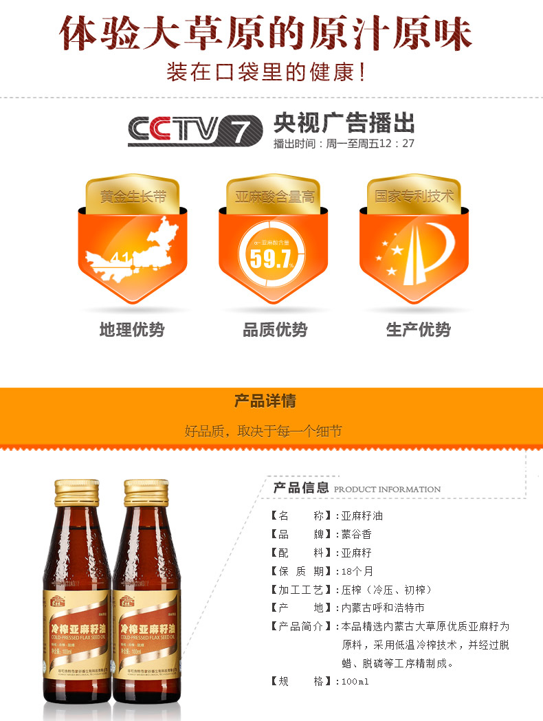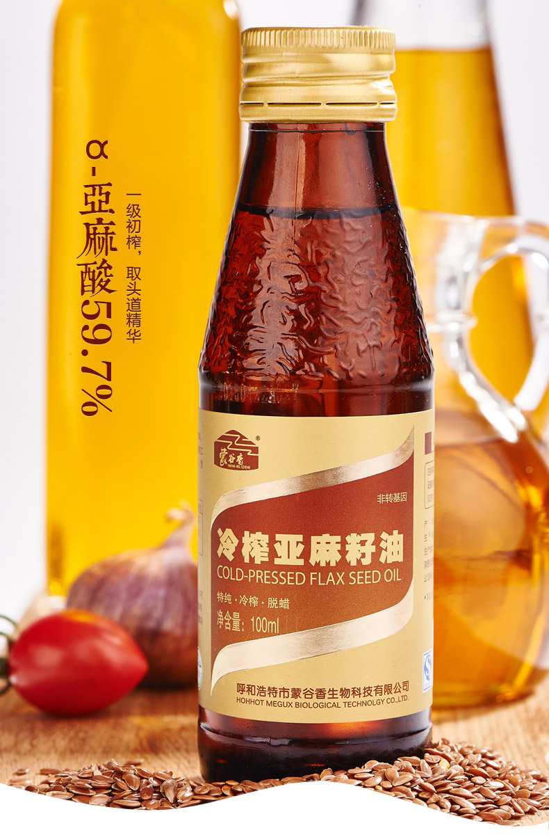 蒙谷香亚麻籽油100ml冷压初榨宝宝孕妇内蒙古食用油胡麻油仁一级