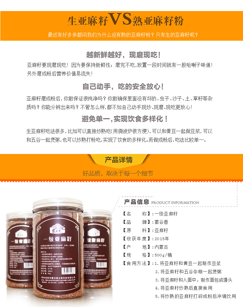 内蒙古蒙谷香一级亚麻籽500克黄金地带胡麻子仁熟五谷杂粮粉