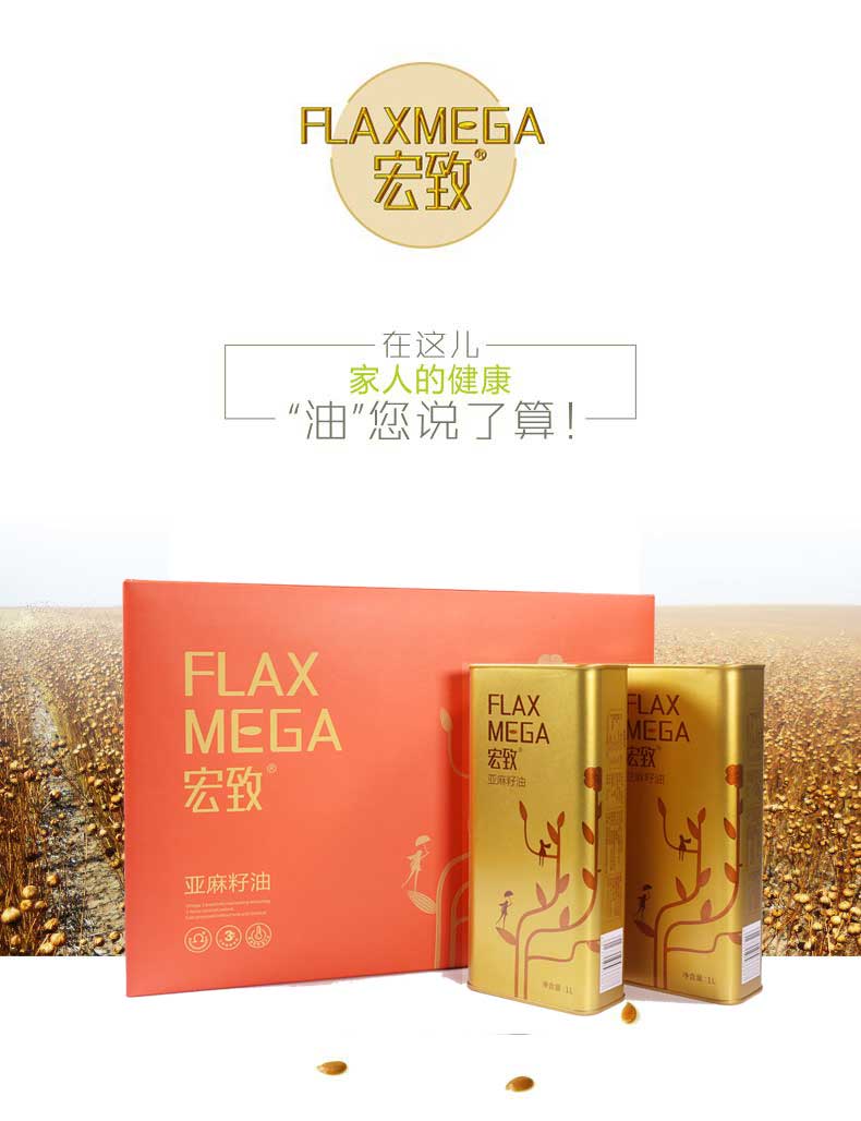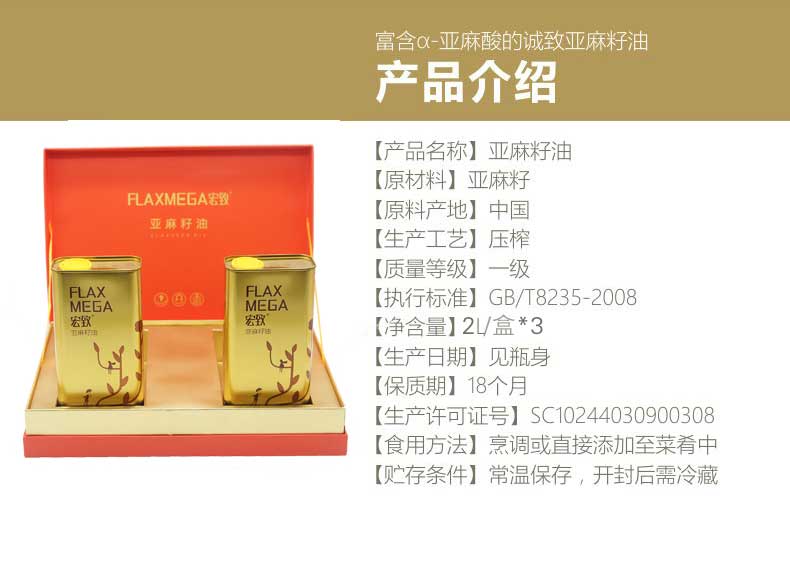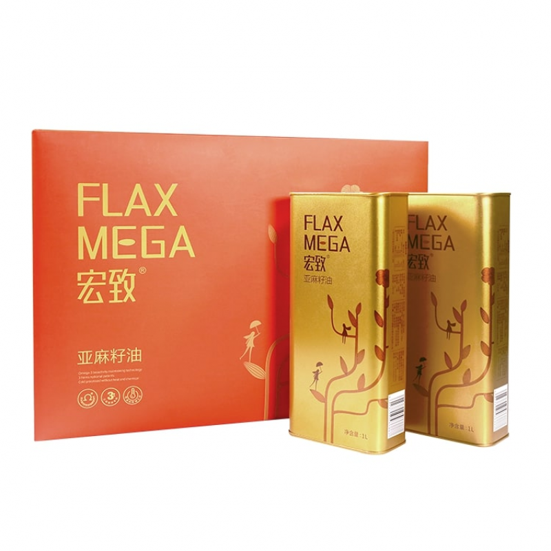 宏致 一级冷榨冷练黄金亚麻籽油 1L*2礼盒装
