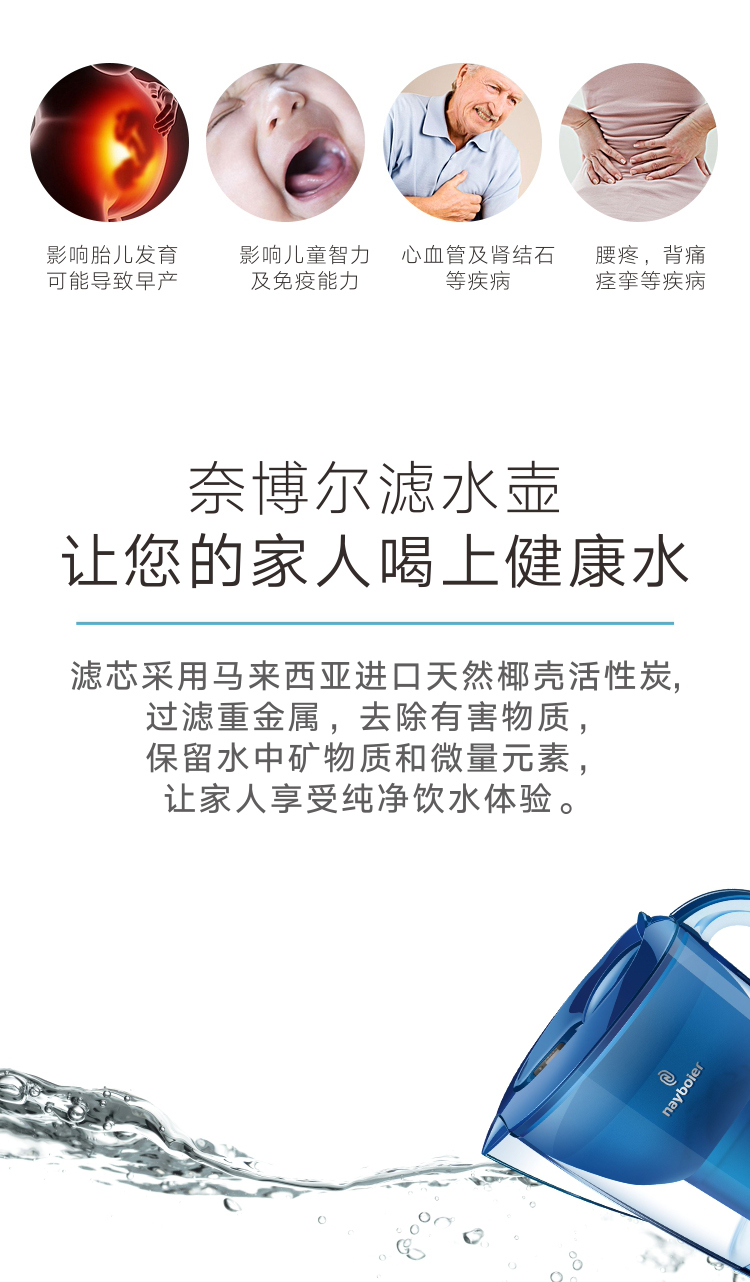 净水器类型: 滤芯式净水器 功效: 直饮 品牌: 奈博尔 工作原理: 活性碳吸附 智能类型: 不支持智能 滤芯: 颗粒活性炭
