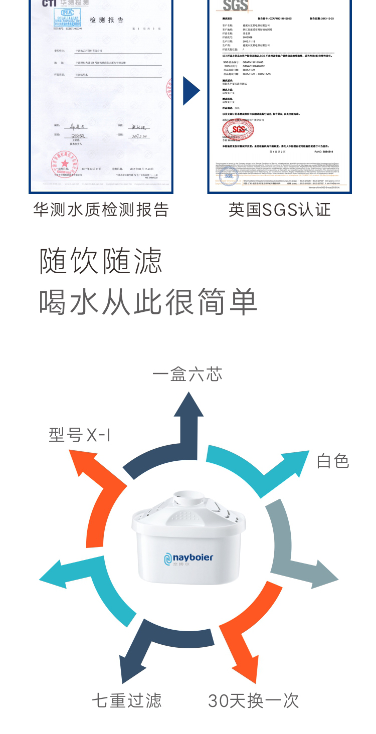 [nayboier]奈博尔滤水壶滤芯套装一盒六个装全国包邮